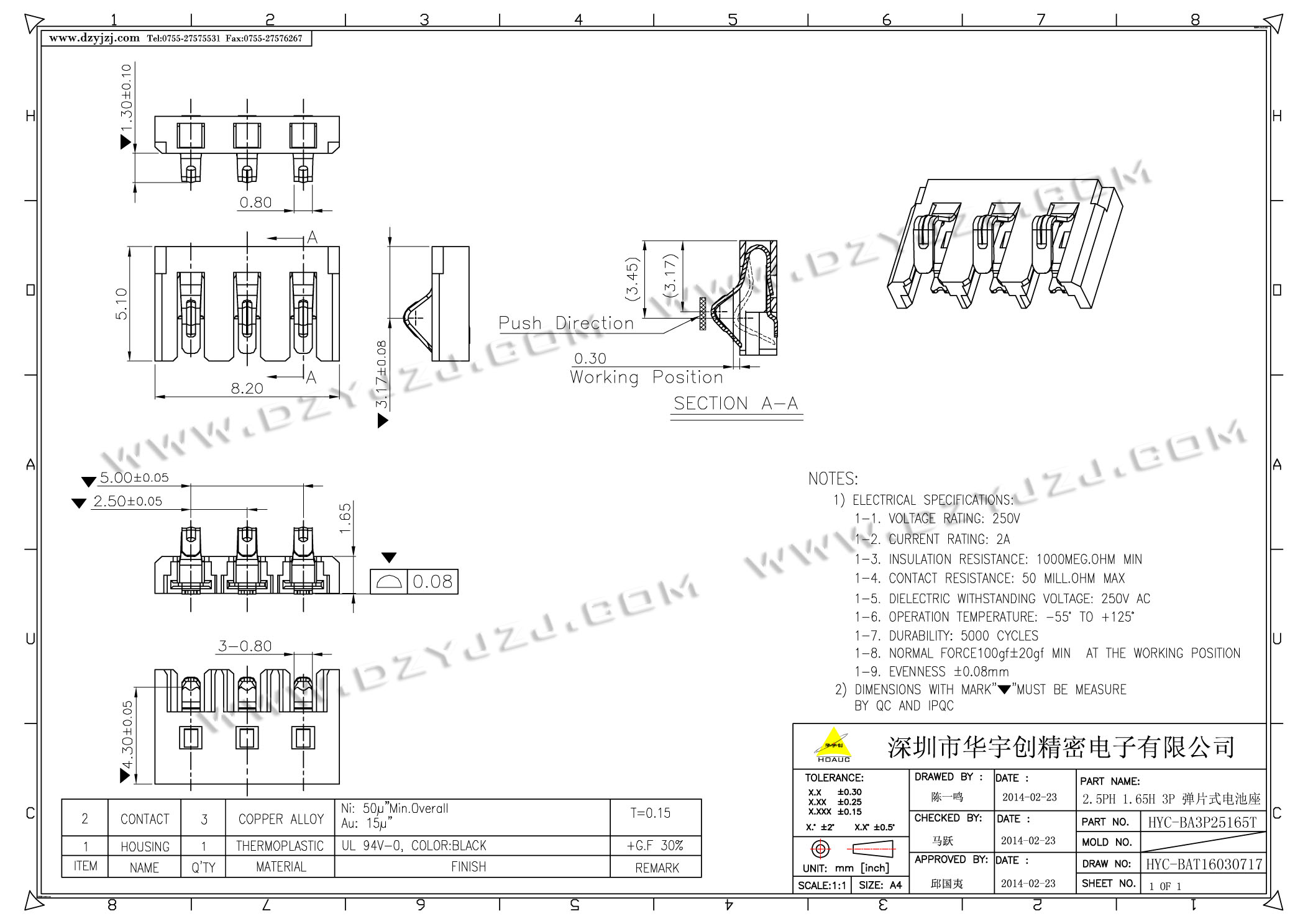 | 商品料号 | HYC-BA3P25165T |