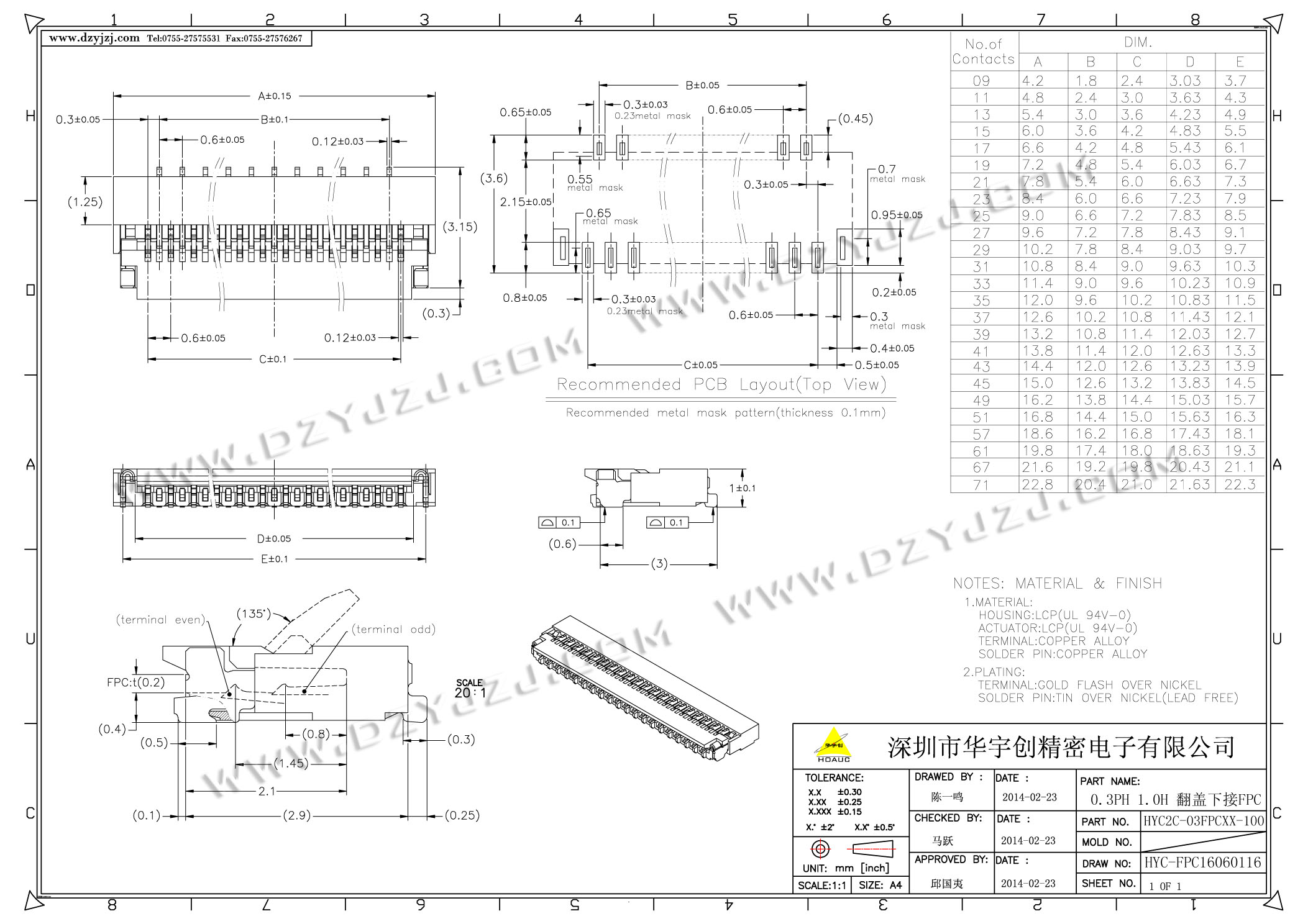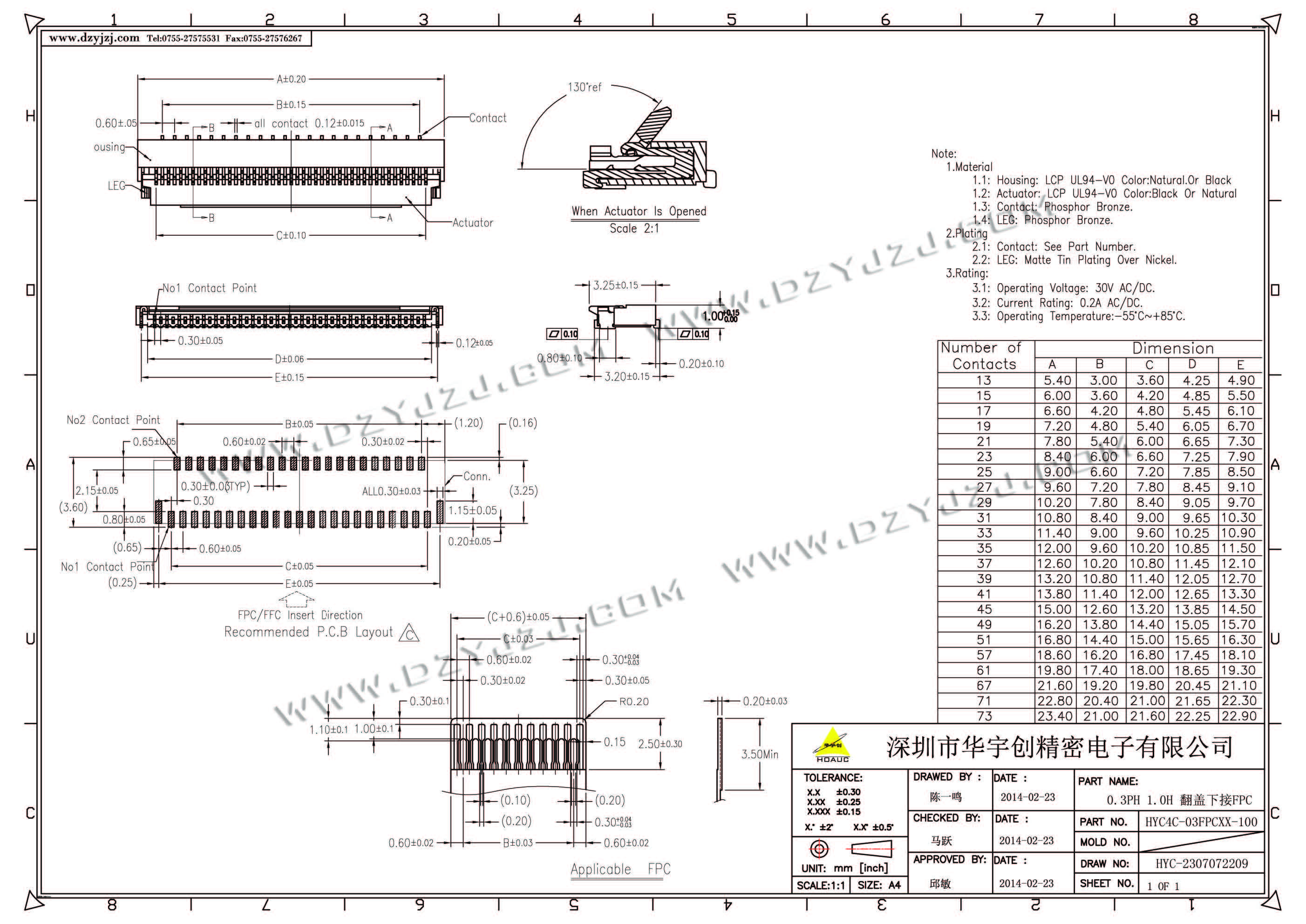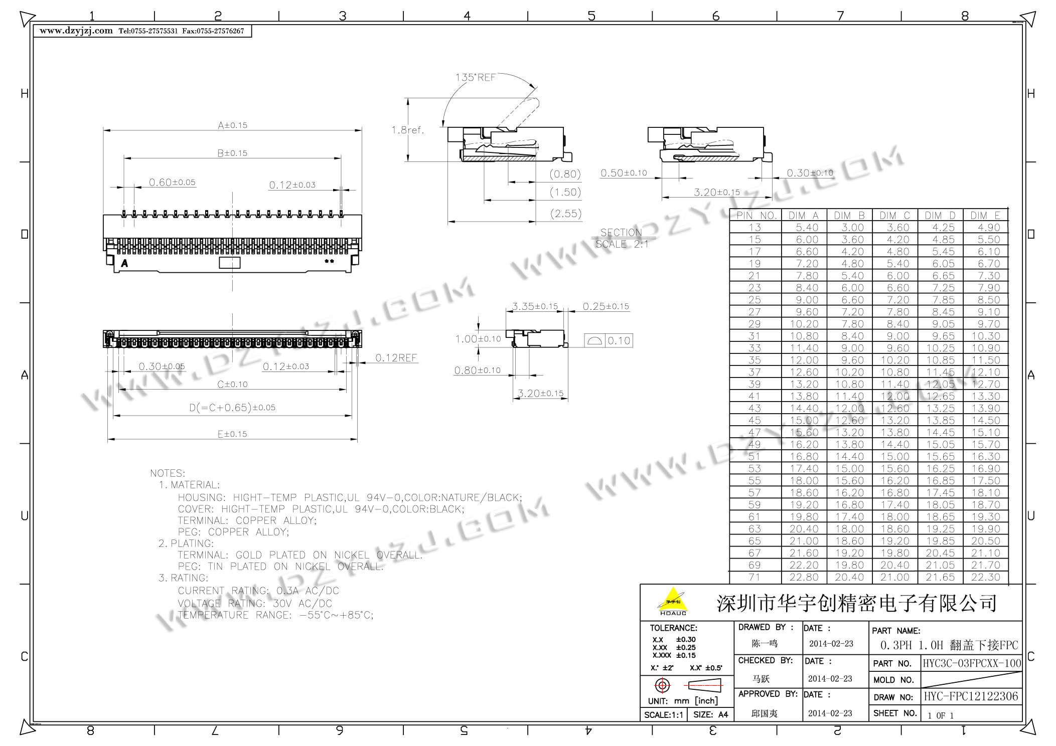 | 商品料号 | HYC2C-03FPCXX-100 |