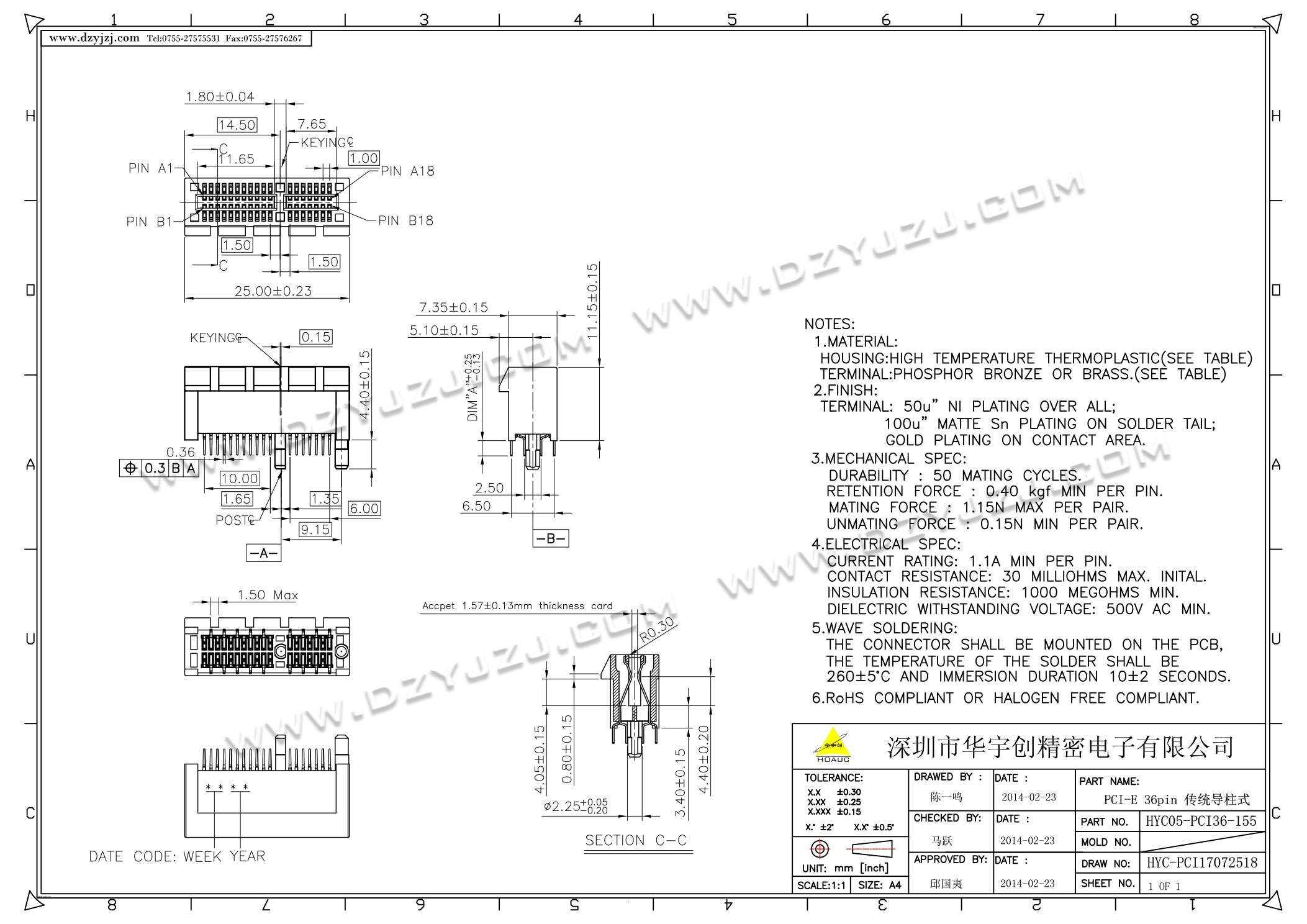 | 商品料号 | HYC05-PCI36-155 |