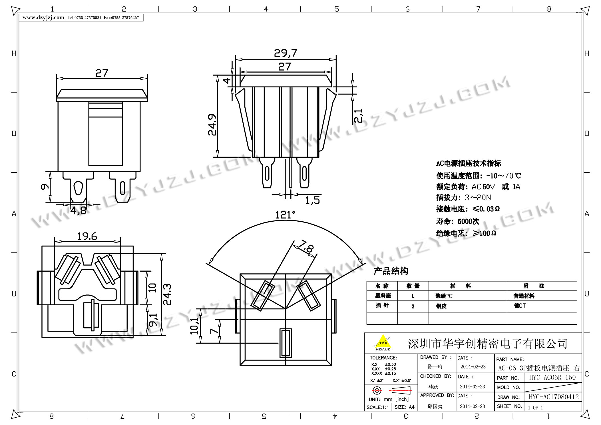 首页 > 分类目录 > AC电源插座 > AC-06 3P插板电源插座 右