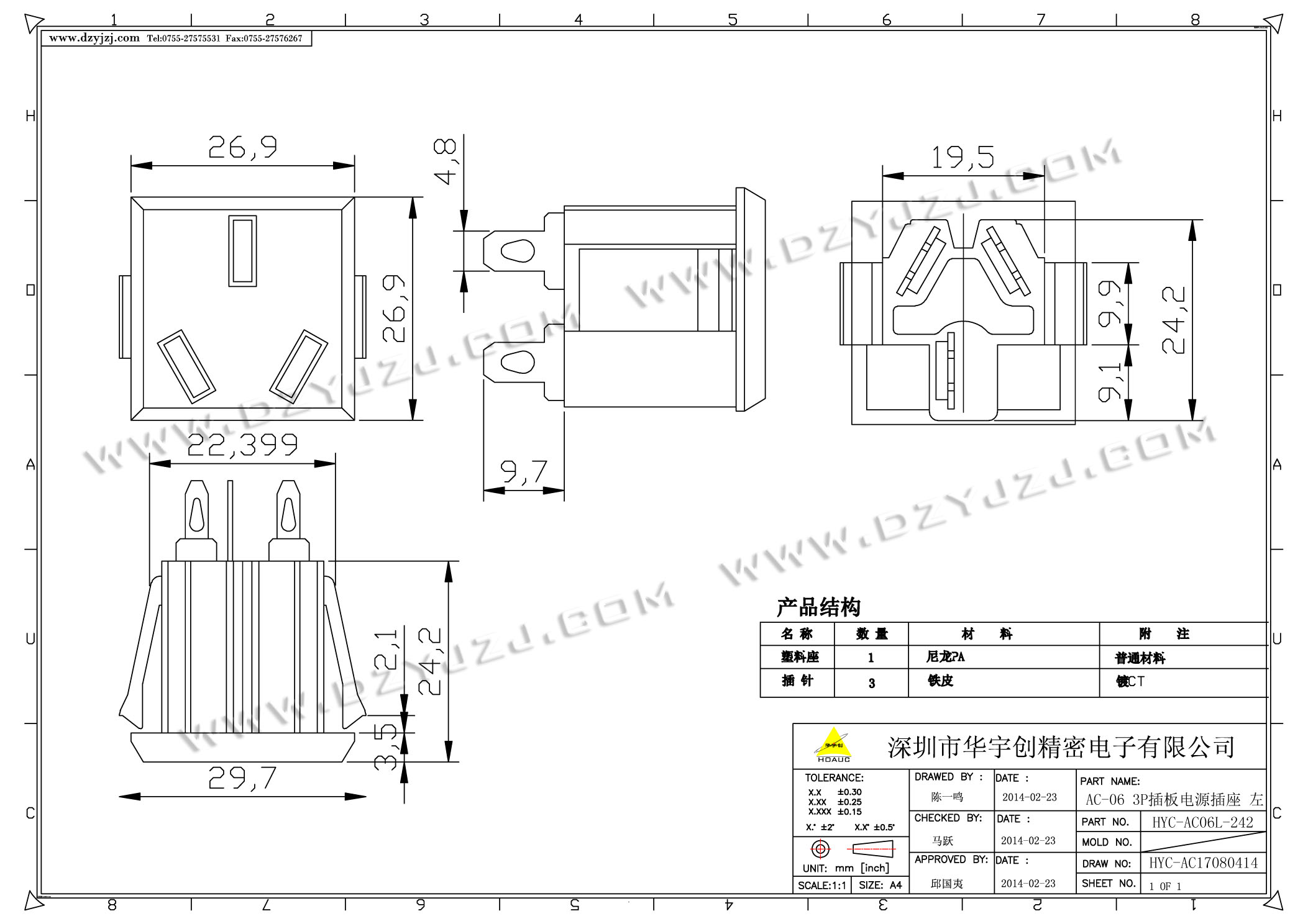 首页 > 分类目录 > AC电源插座 > AC-06 3P插板电源插座 左