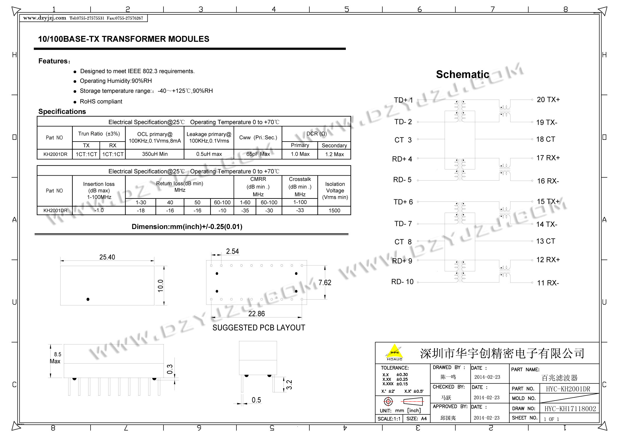 首页 > 分类目录 > 滤波器 > 百兆滤波器KH2001DR