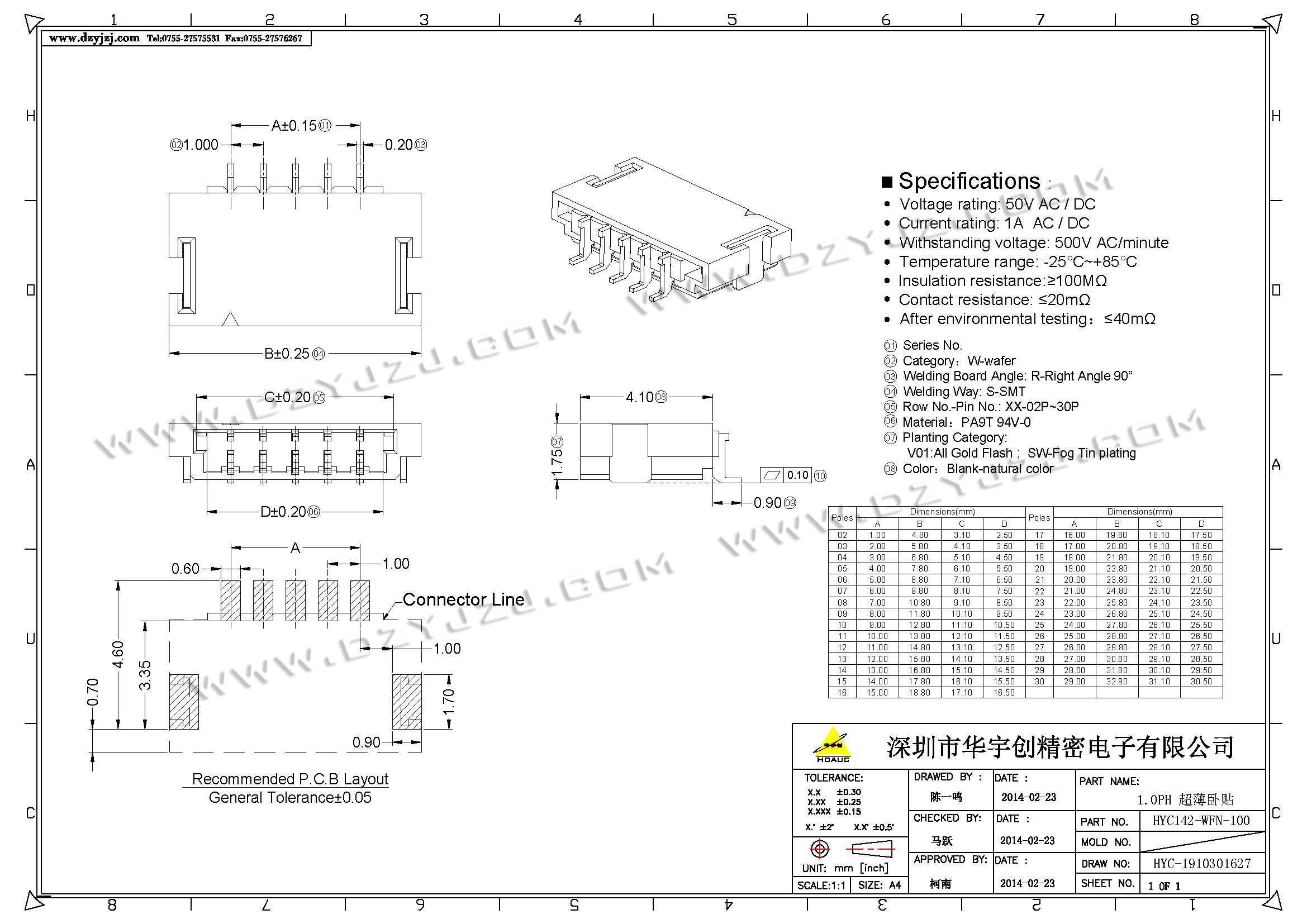 商品料号 HYC142-WFN-100