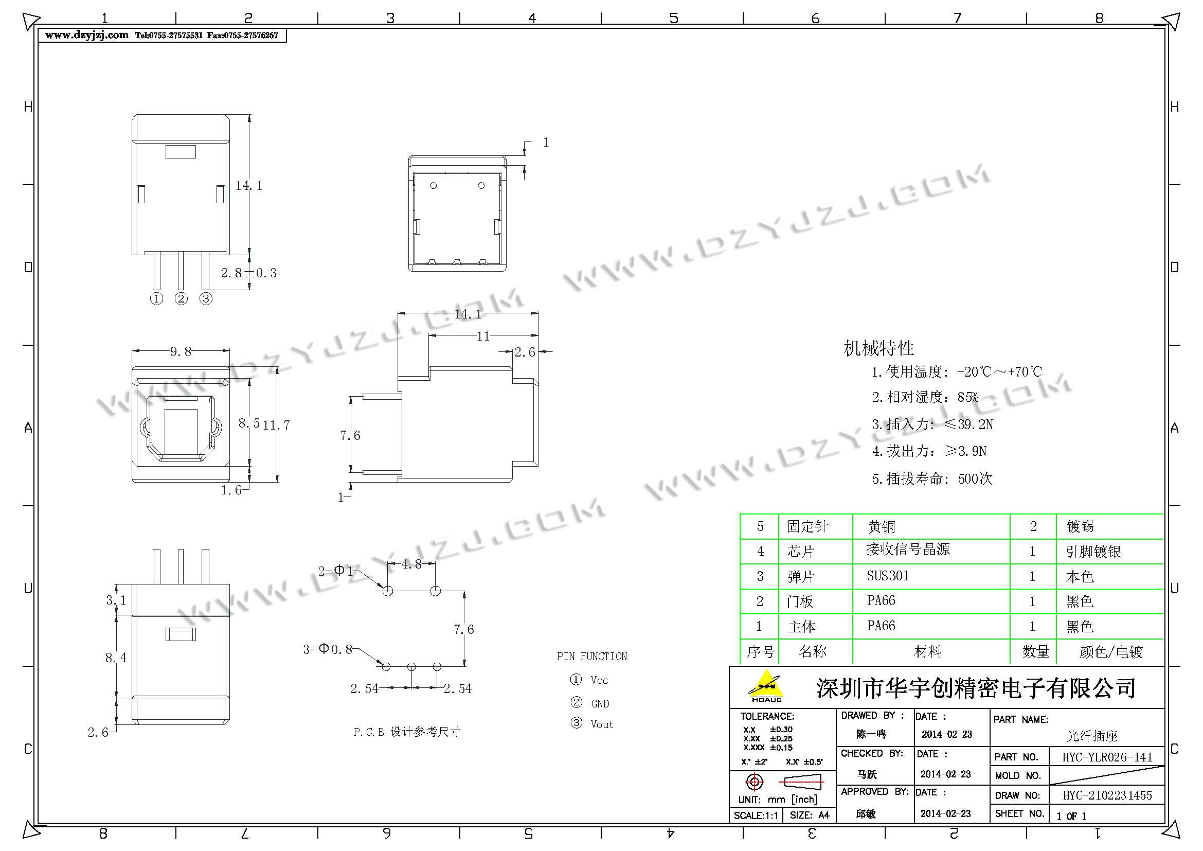 YLR026 光纤插座接收