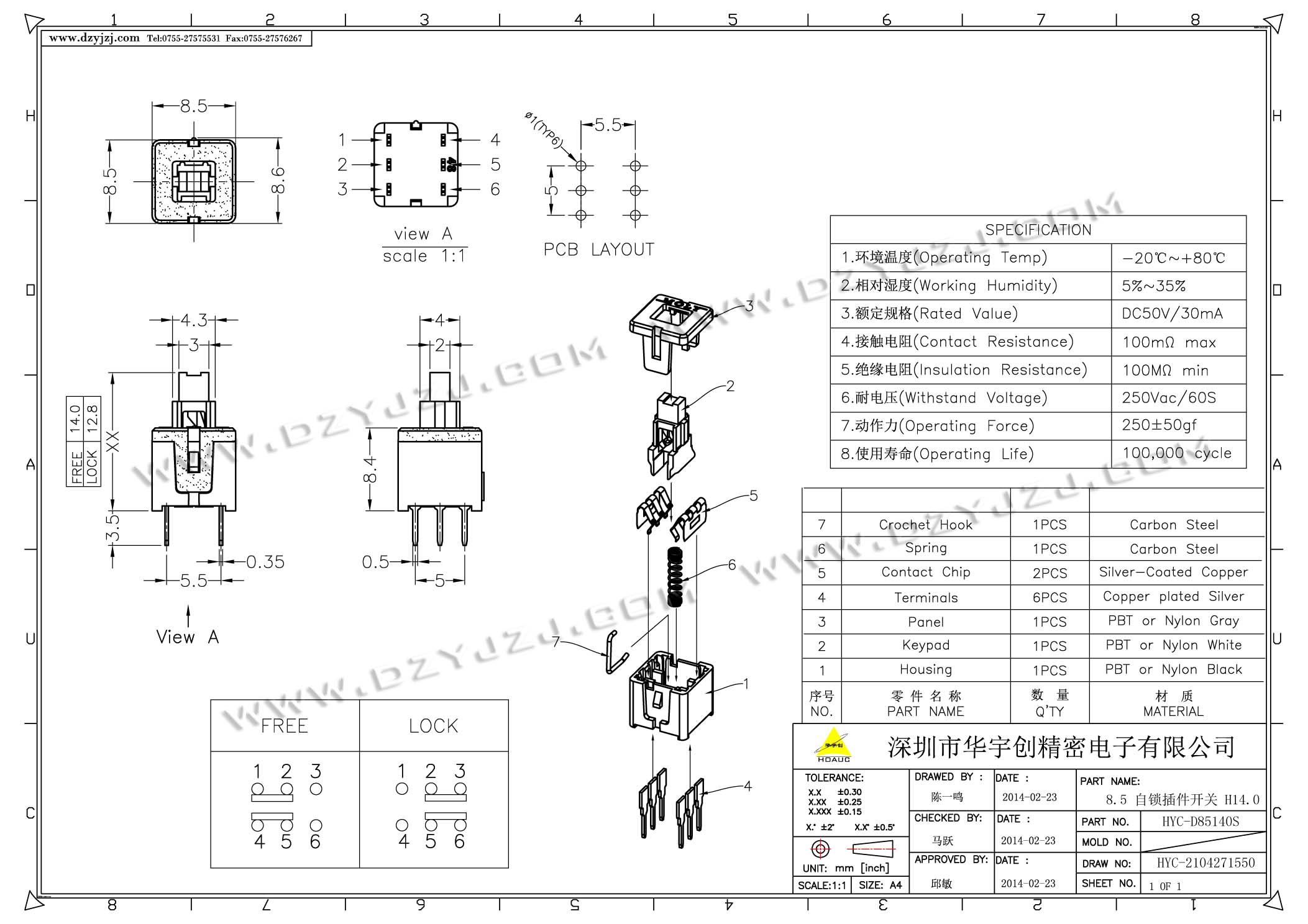 首页 > 分类目录 > 自锁/无锁开关 > 8.5高头自锁插件开关 14.0高