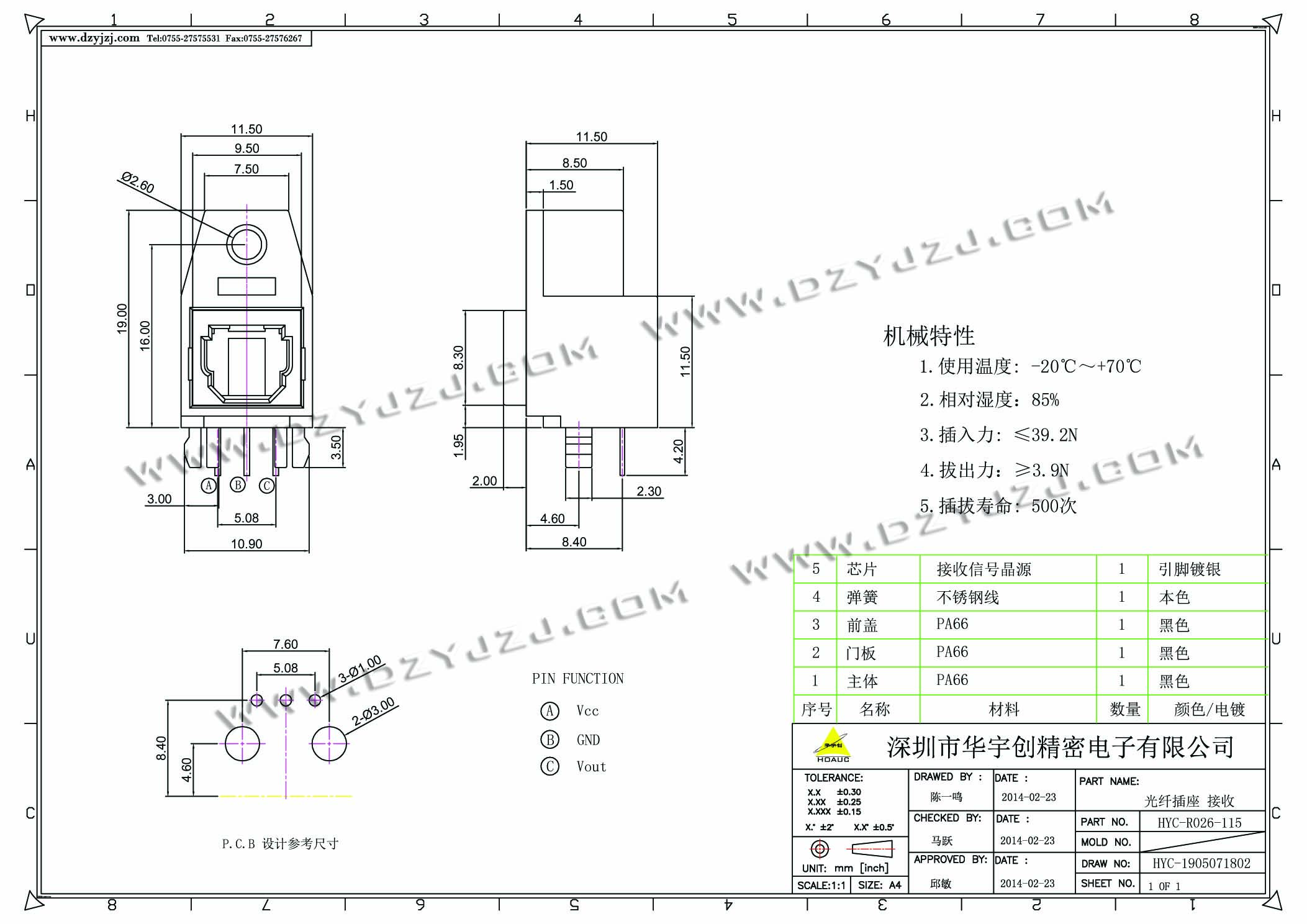 R026 光纤插座接收