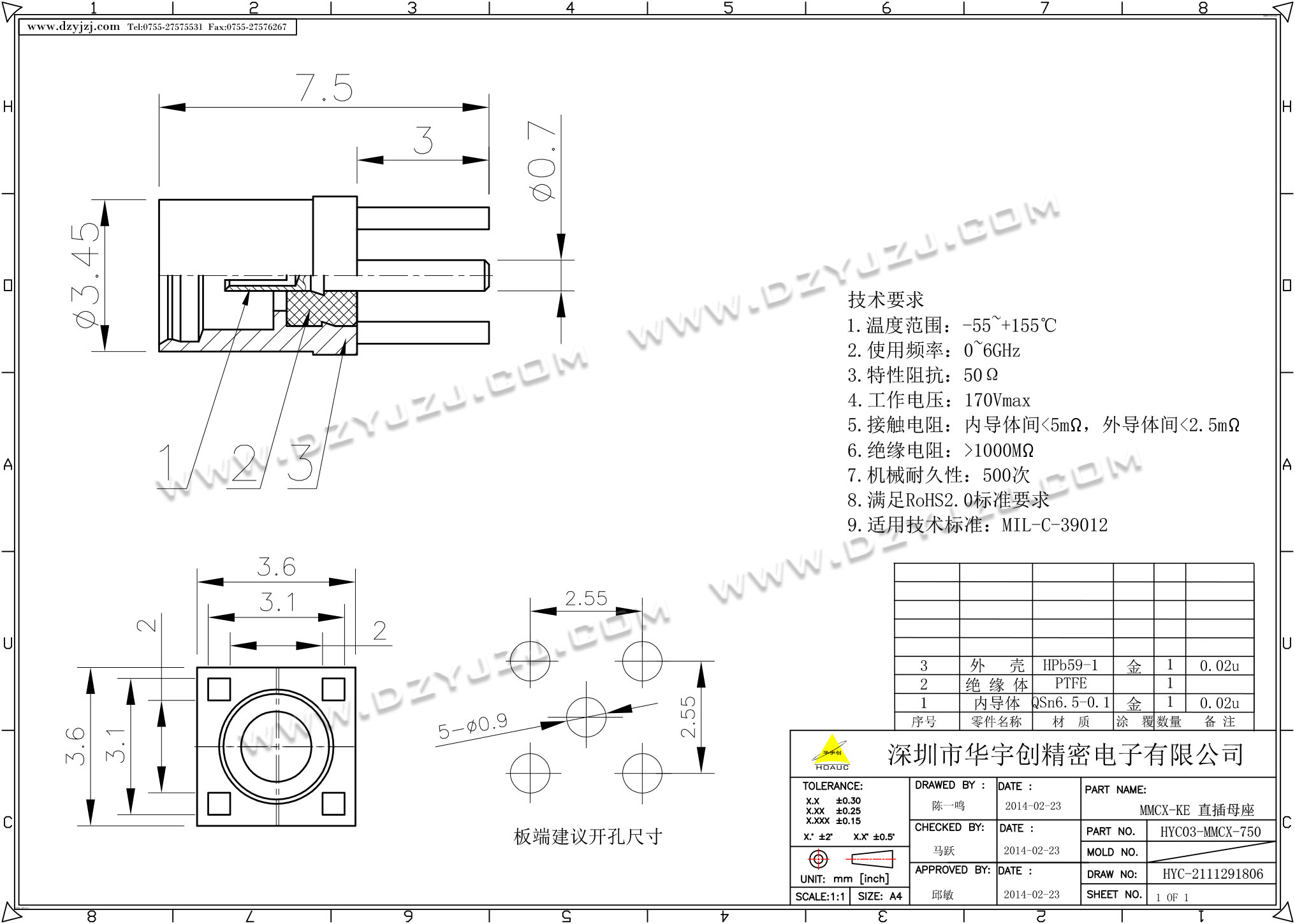 SMA 180°DIP 正脚带孔 L16.5 11牙