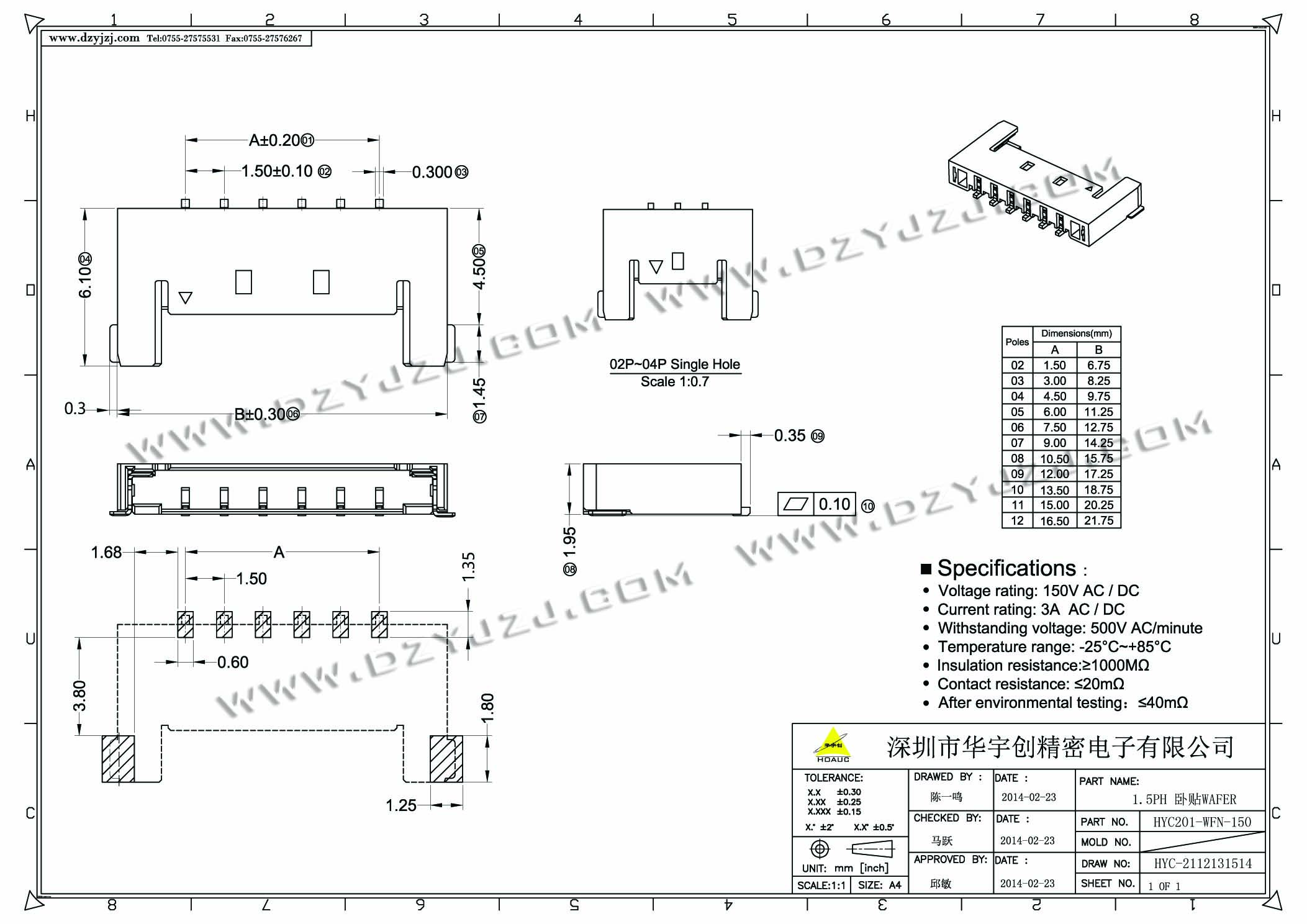 商品料号 HYC201-WFN-150