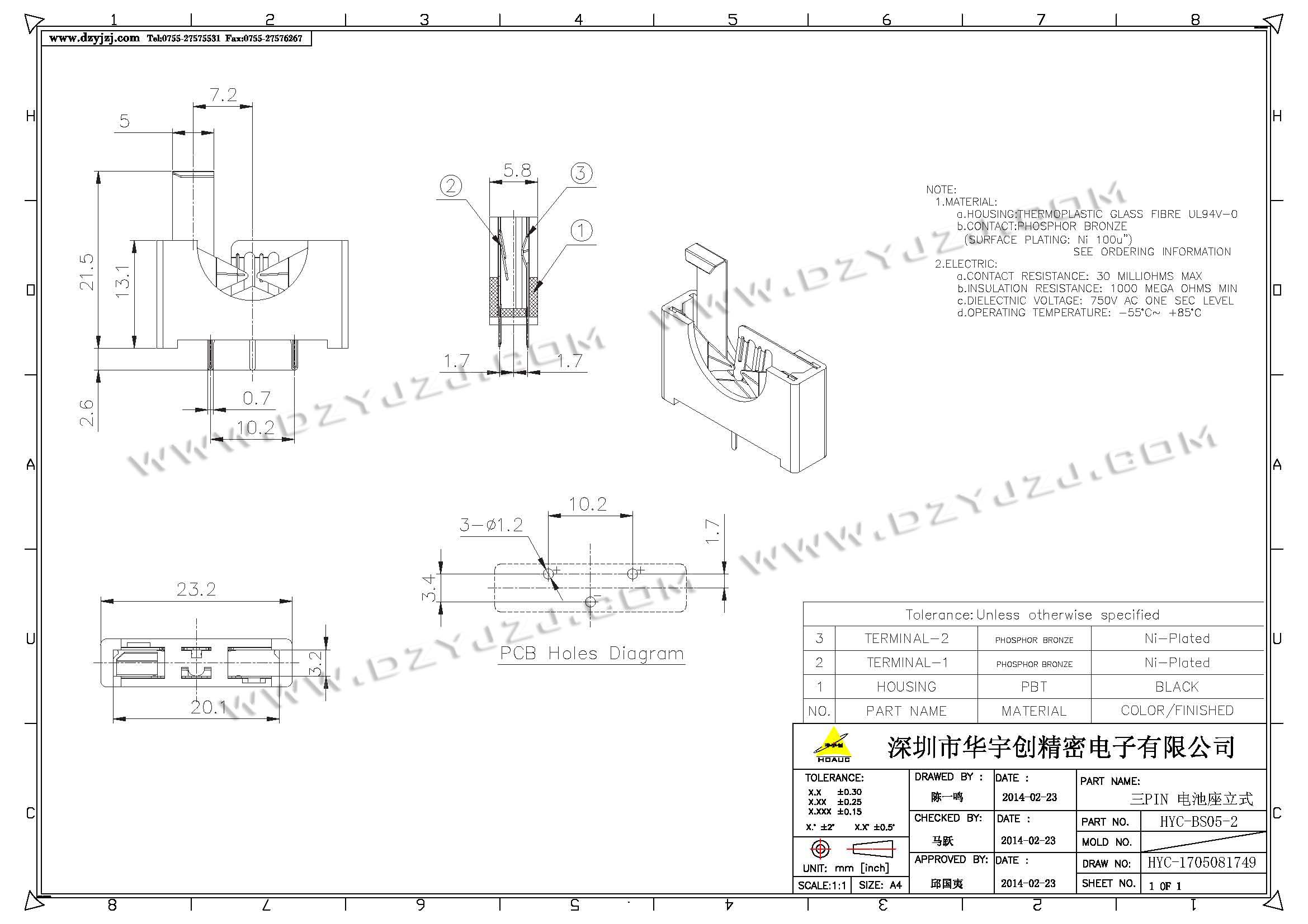 首页 > 分类目录 > 纽扣电池座 > 三PIN 电池座立式BS-5-2