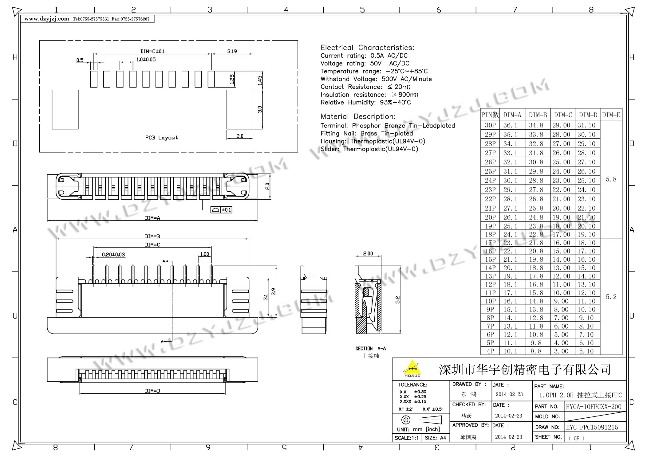 | 商品料号 | HYC1A-10FPCXX-200 |