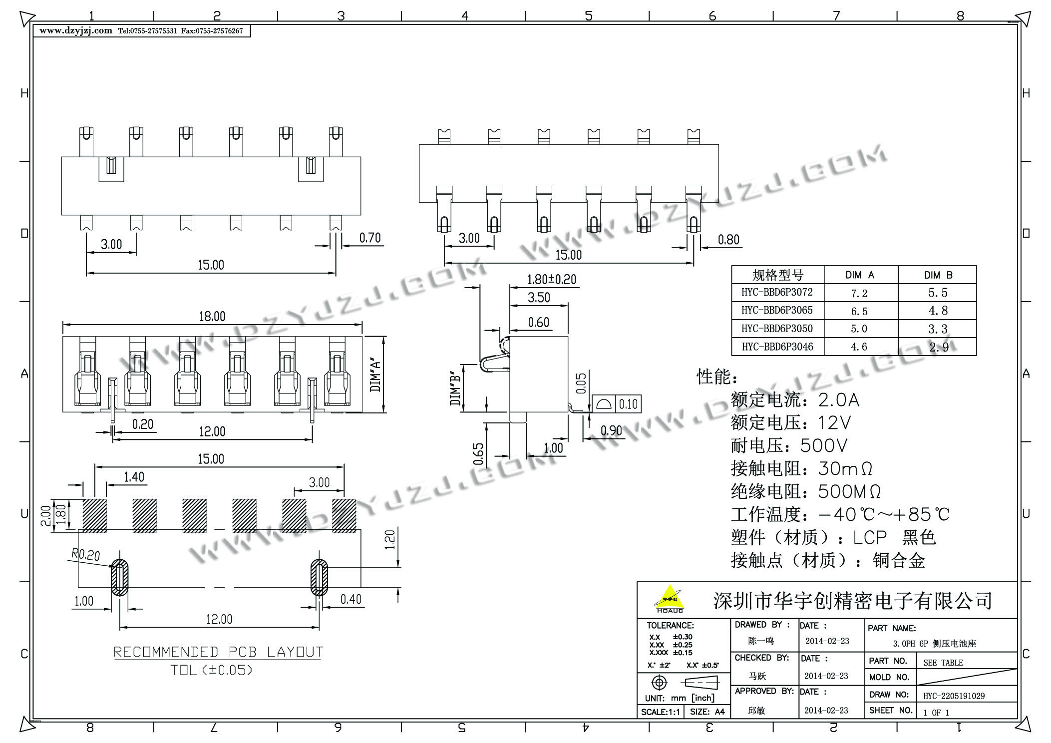 3.0PH 6P 侧压电池座插件