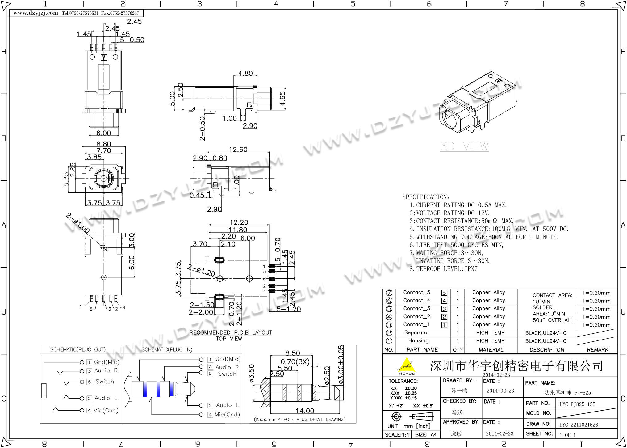 防水耳机座 PJ-825