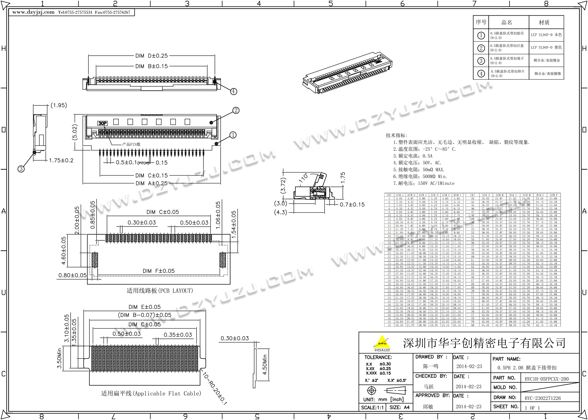 | 商品料号 | HYC1H-05FPCXX-200 |