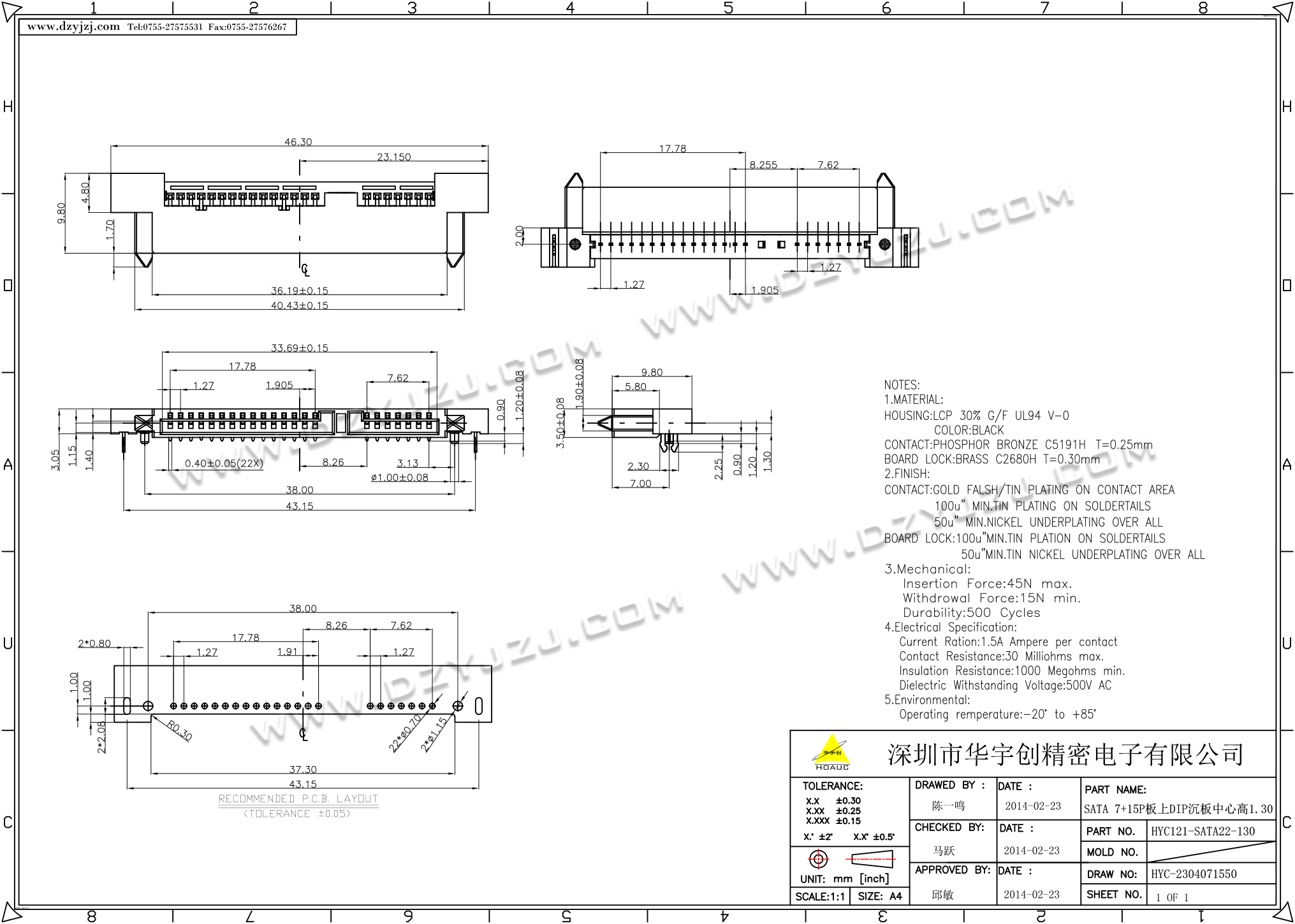 | 商品料号 | HYC121-SATA22-130 |