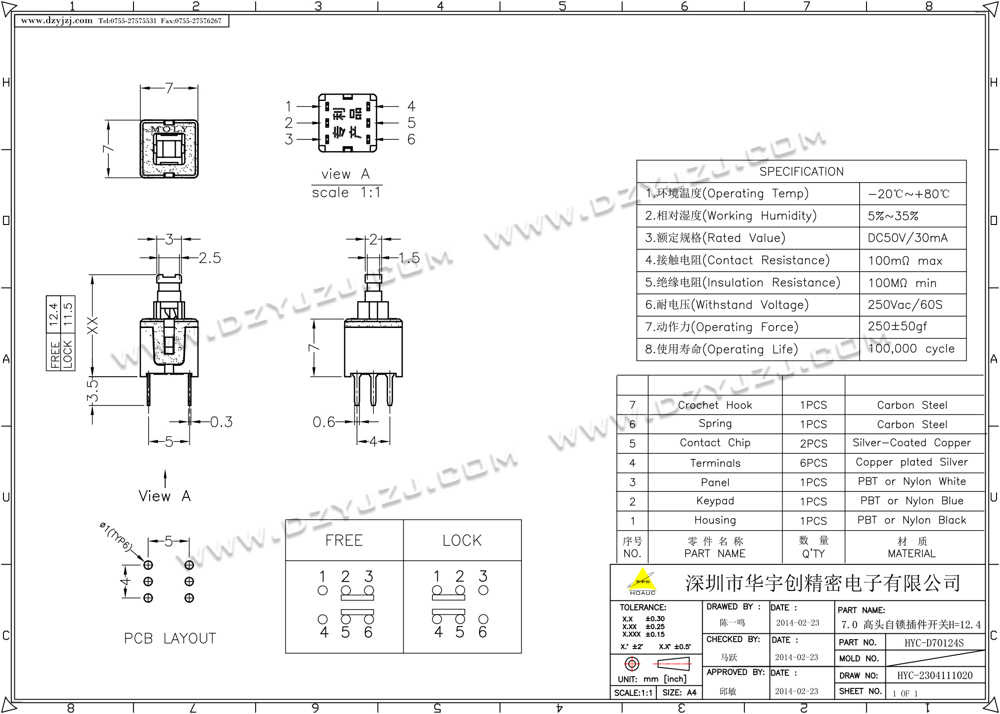 首页 > 分类目录 > 自锁/无锁开关 > 7.0高头自锁插件开关 12.4高