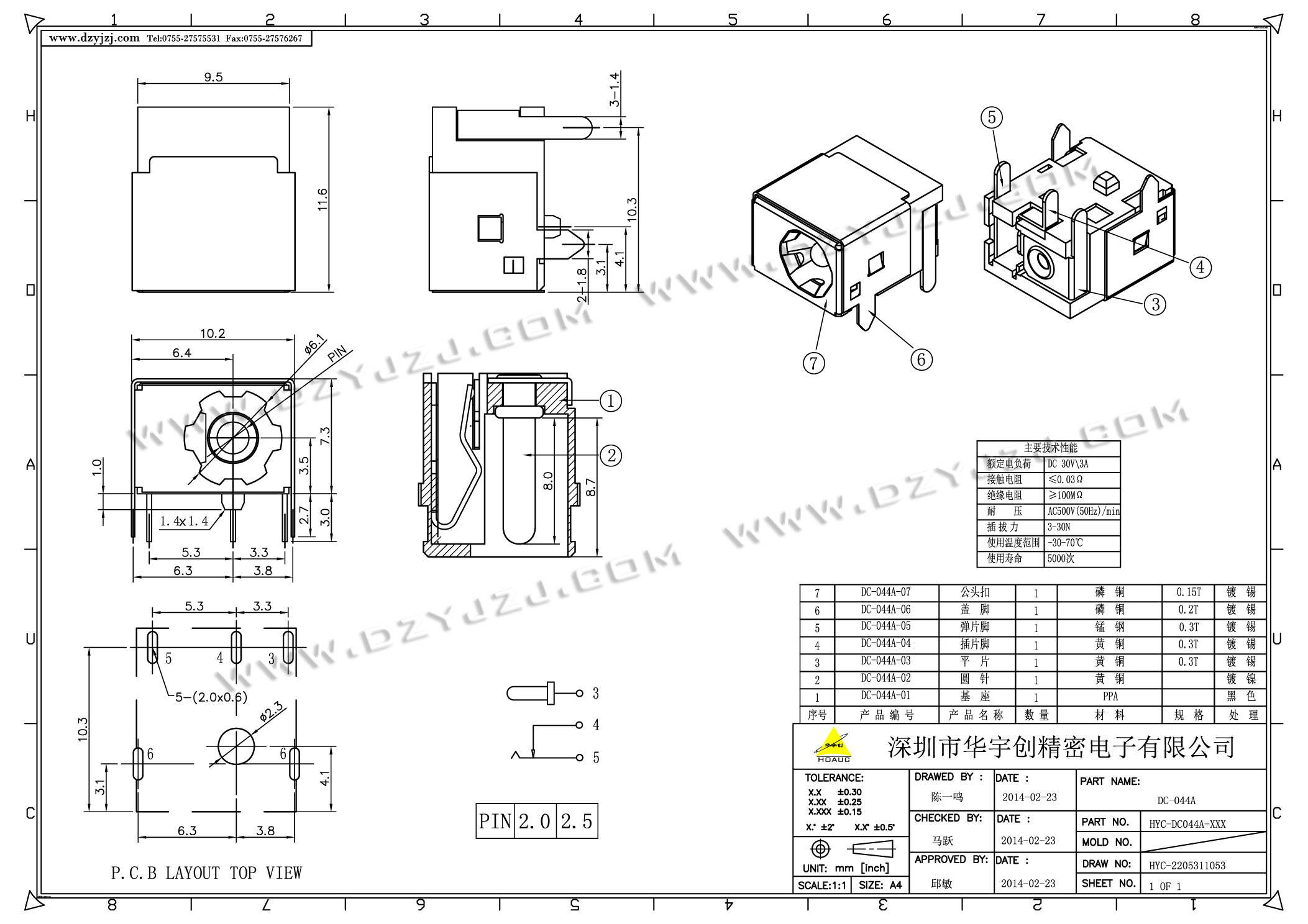 商品料号 HYC-DC044A-XXX