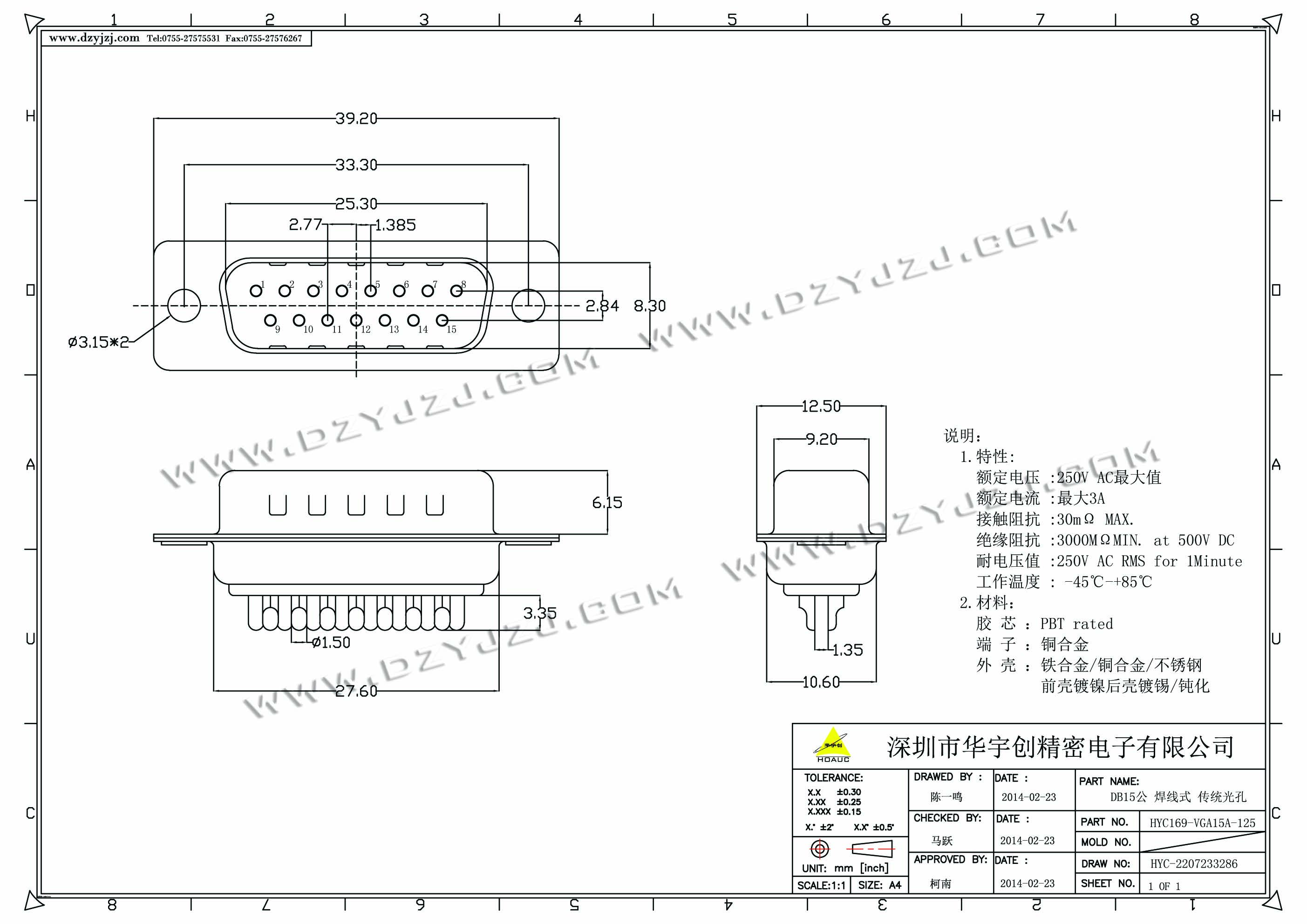 | 商品料号 | HYC169-VGA15A-125 |