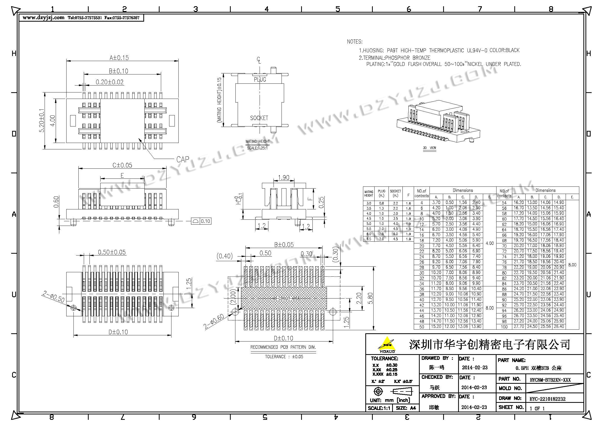 | 商品料号 | HYC40M/F-BTB2XN-XXX |