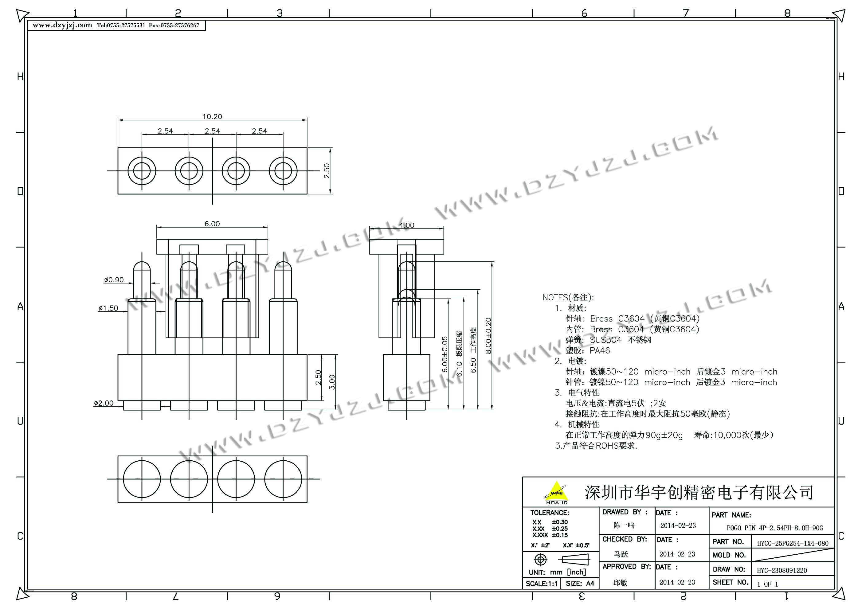 | 商品料号 | HYC0-25PG254-1X4-080 |