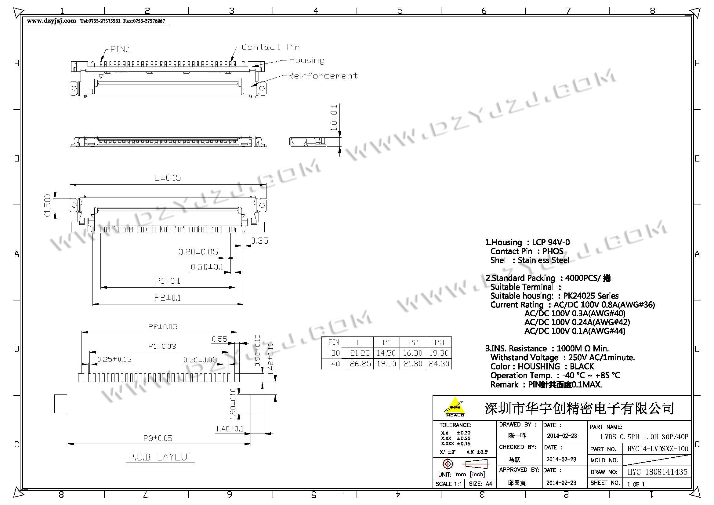 | 商品料号 | HYC14-LVDSXX-100 |