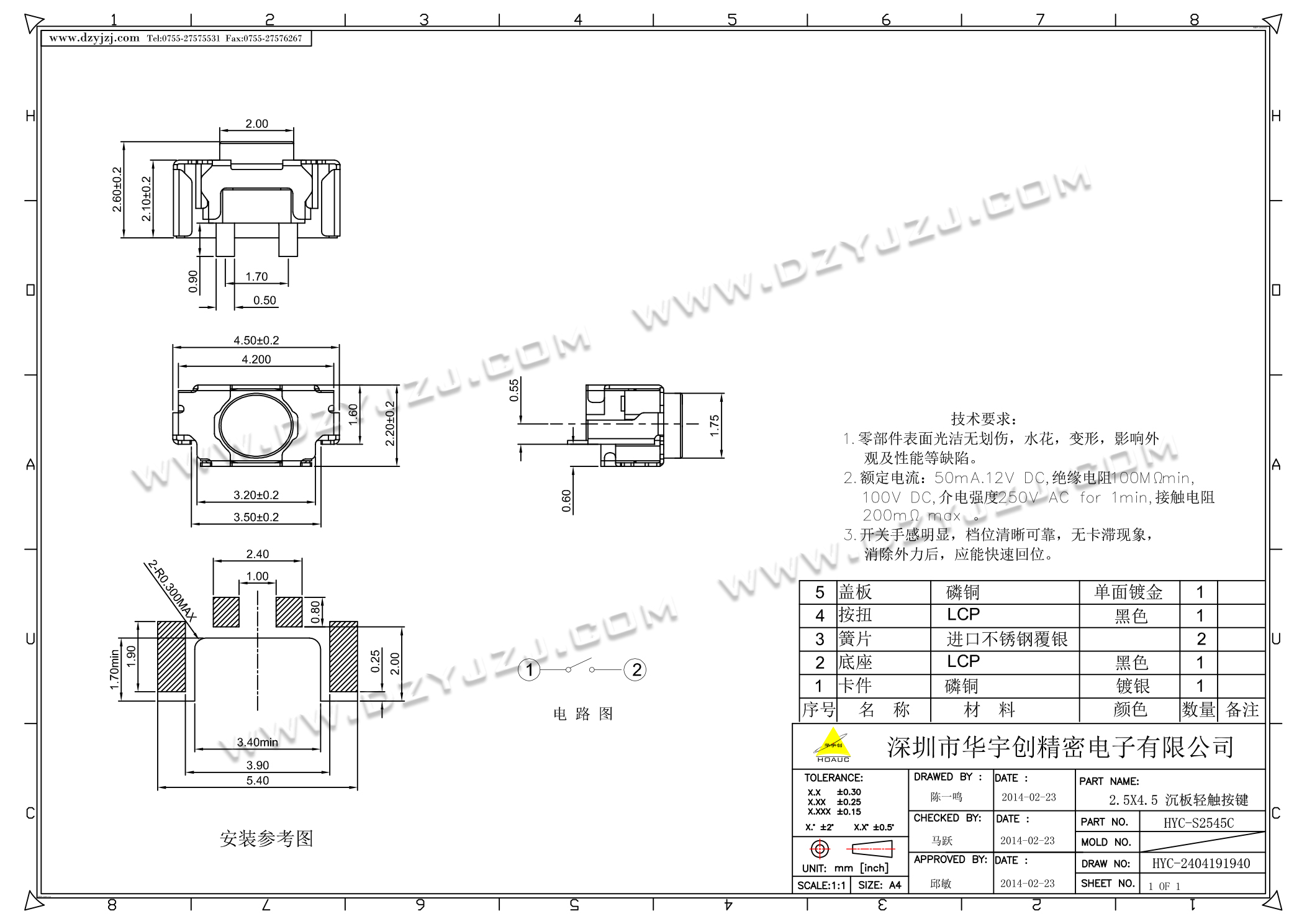 2.5X4.5 沉板轻触按键