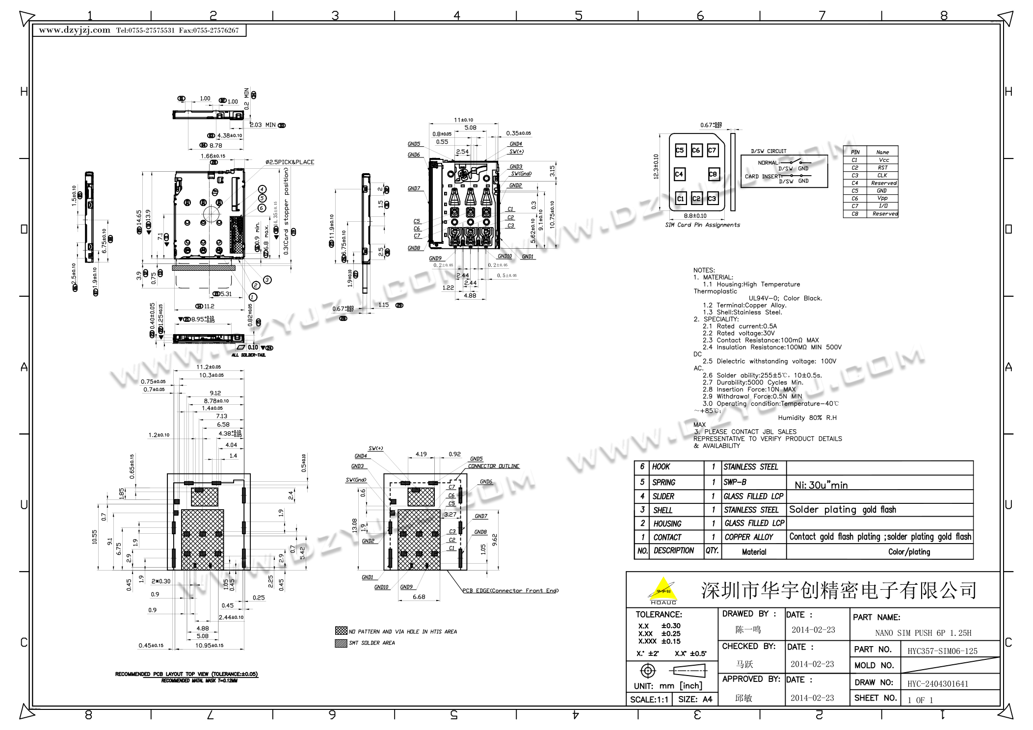 | 商品料号 | HYC214-SIM06-125 |