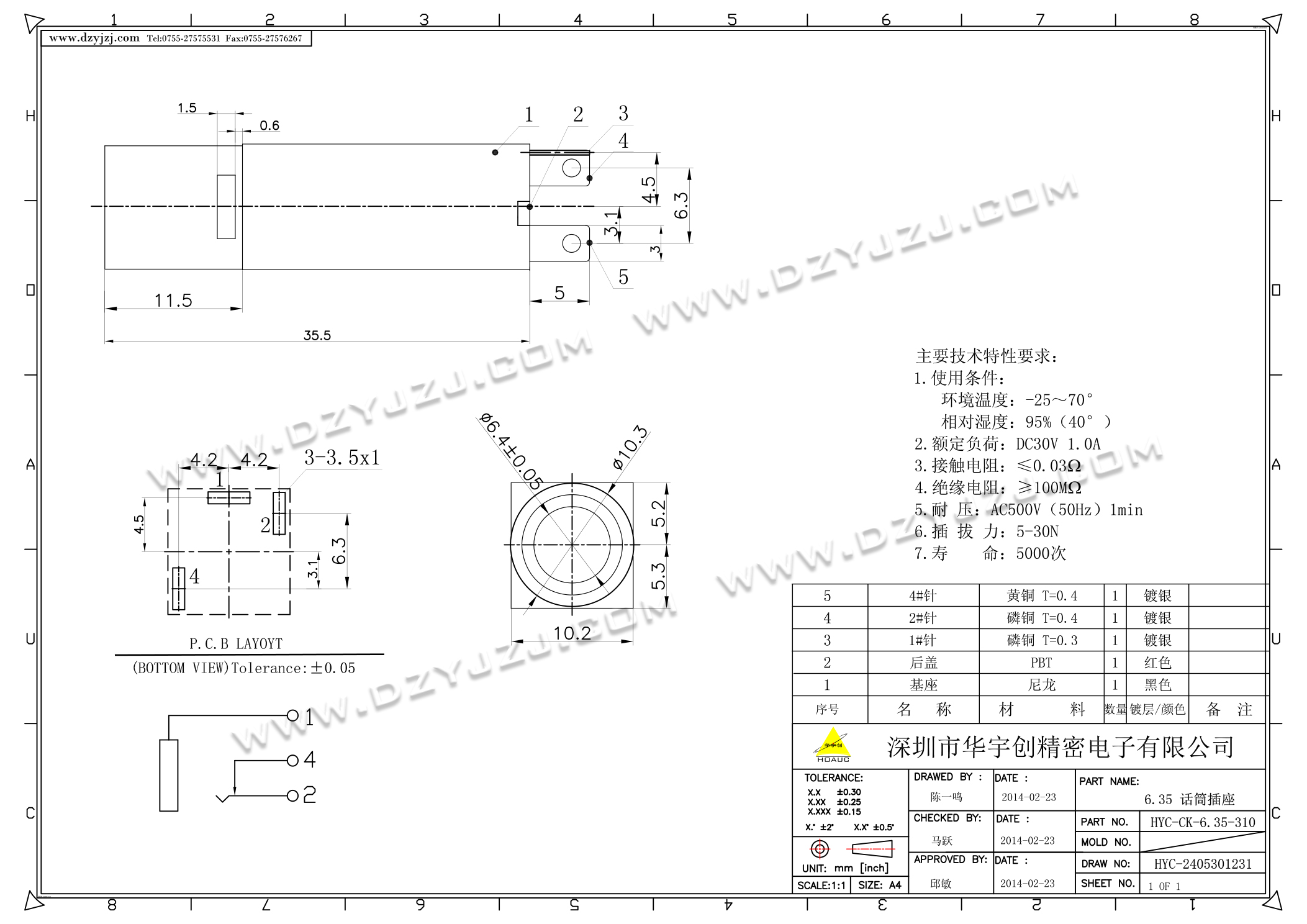 商品料号 HYC-CK-6.35-310