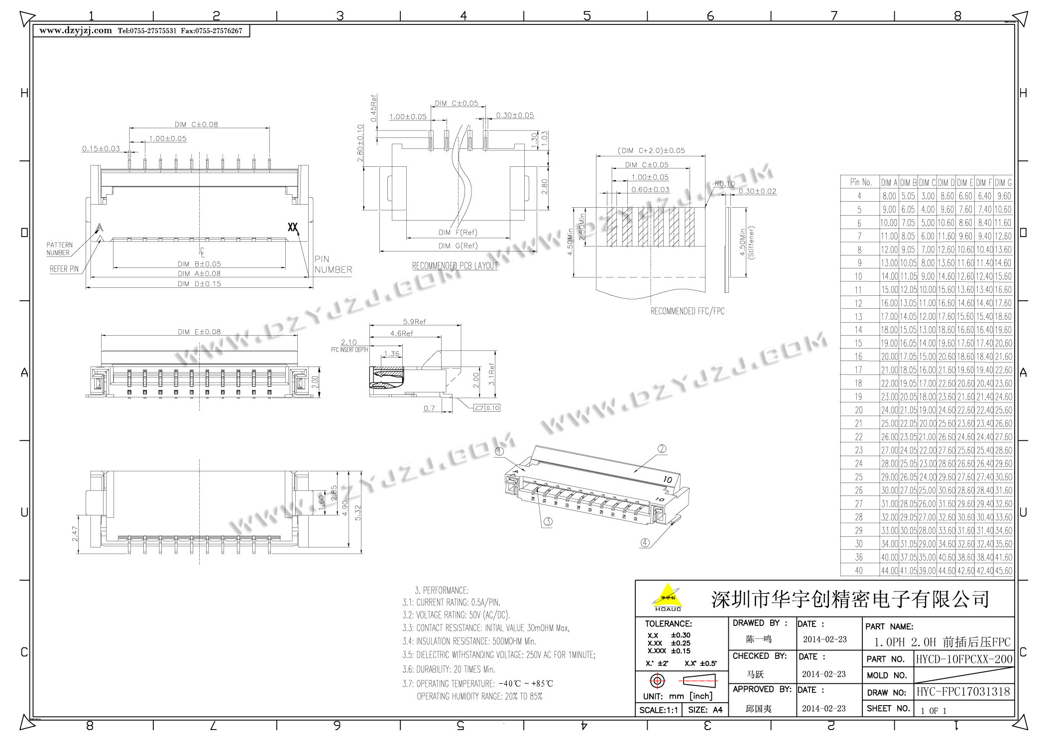 | 商品料号 | HYC1D-10FPCXX-200 |