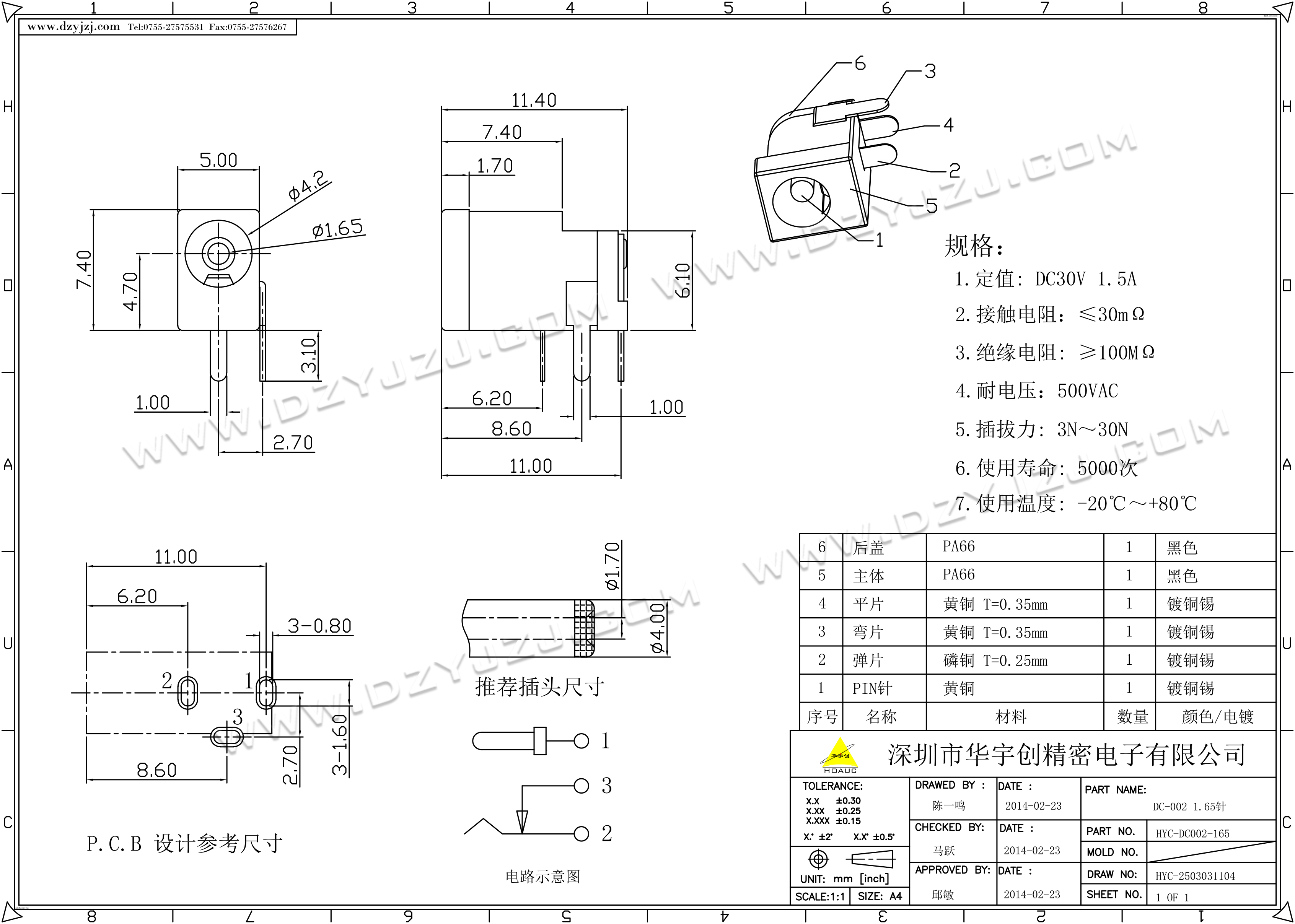 首页 > 分类目录 > DC电源座 > DC-002 1.65针