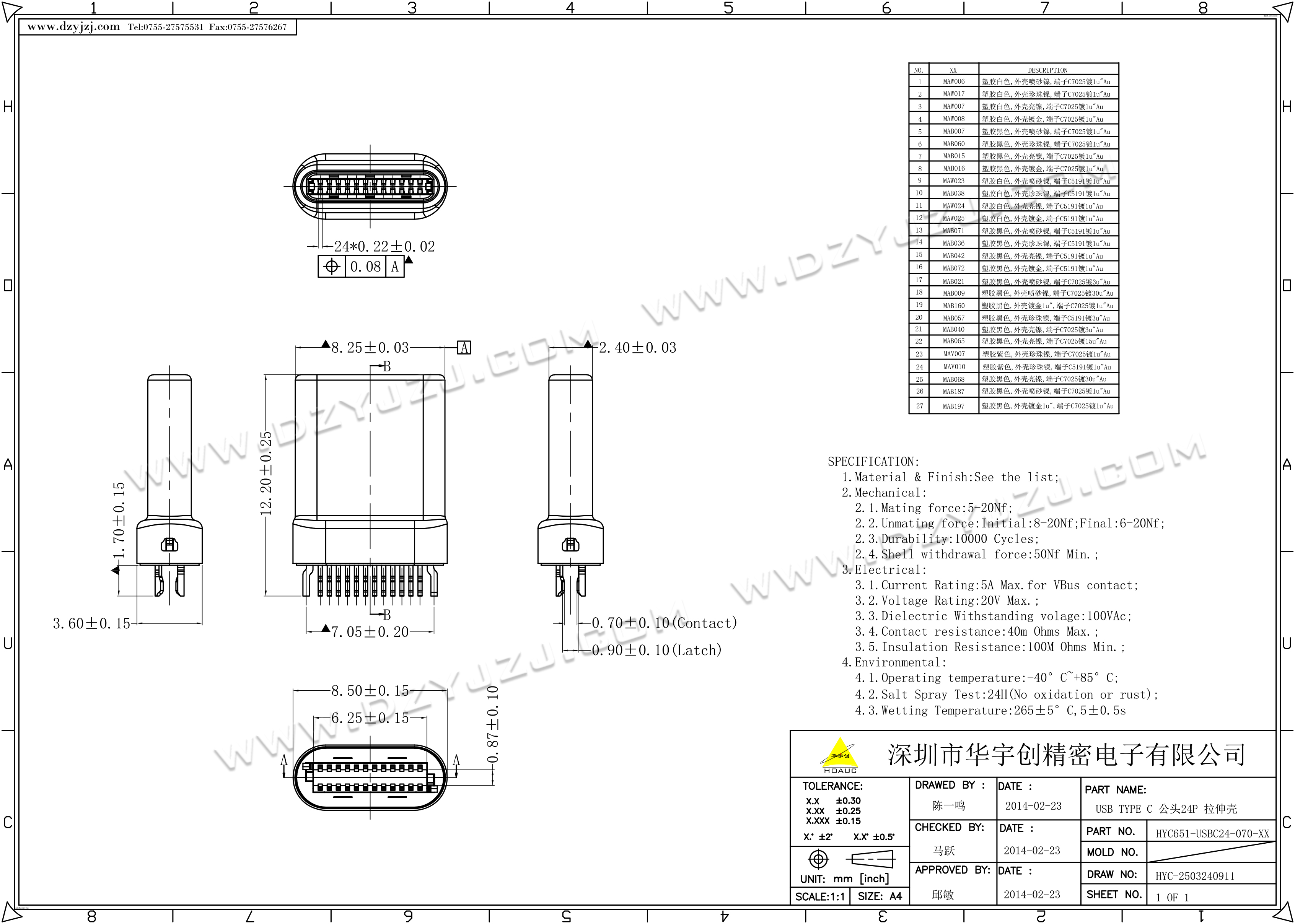 | 商品料号 | HYC651-USBC24-070-XX |