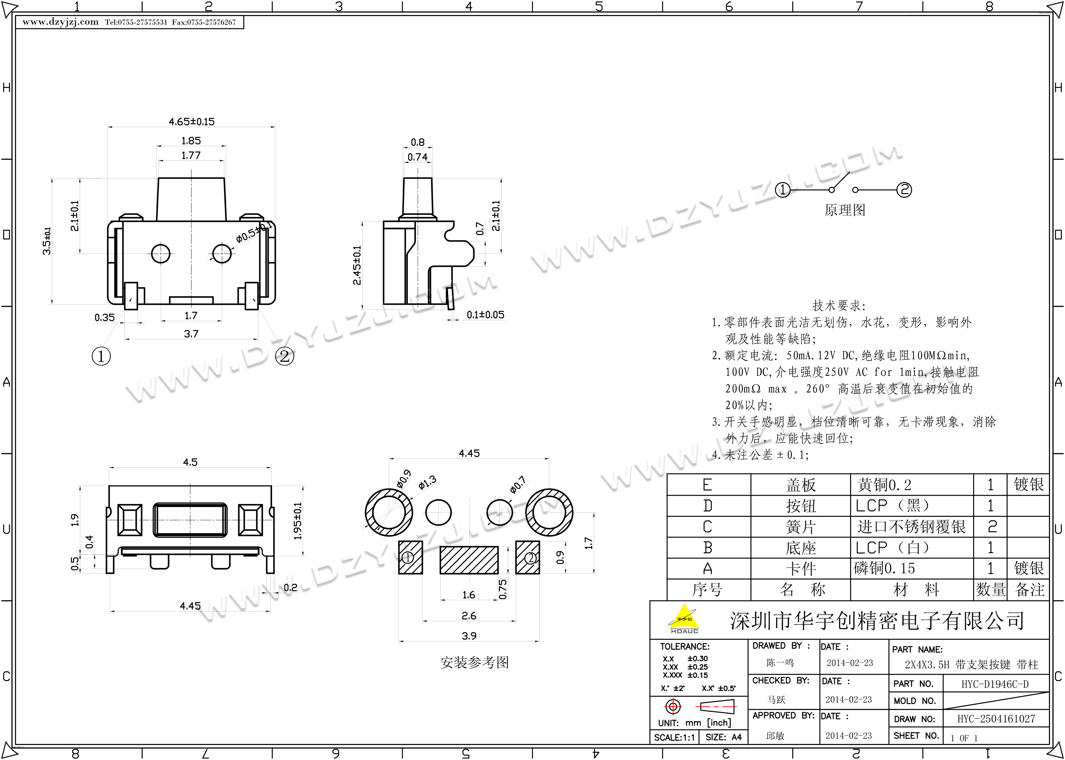 首页 > 分类目录 > 轻触开关 > 2X4X3.5H 带支架按键 带柱