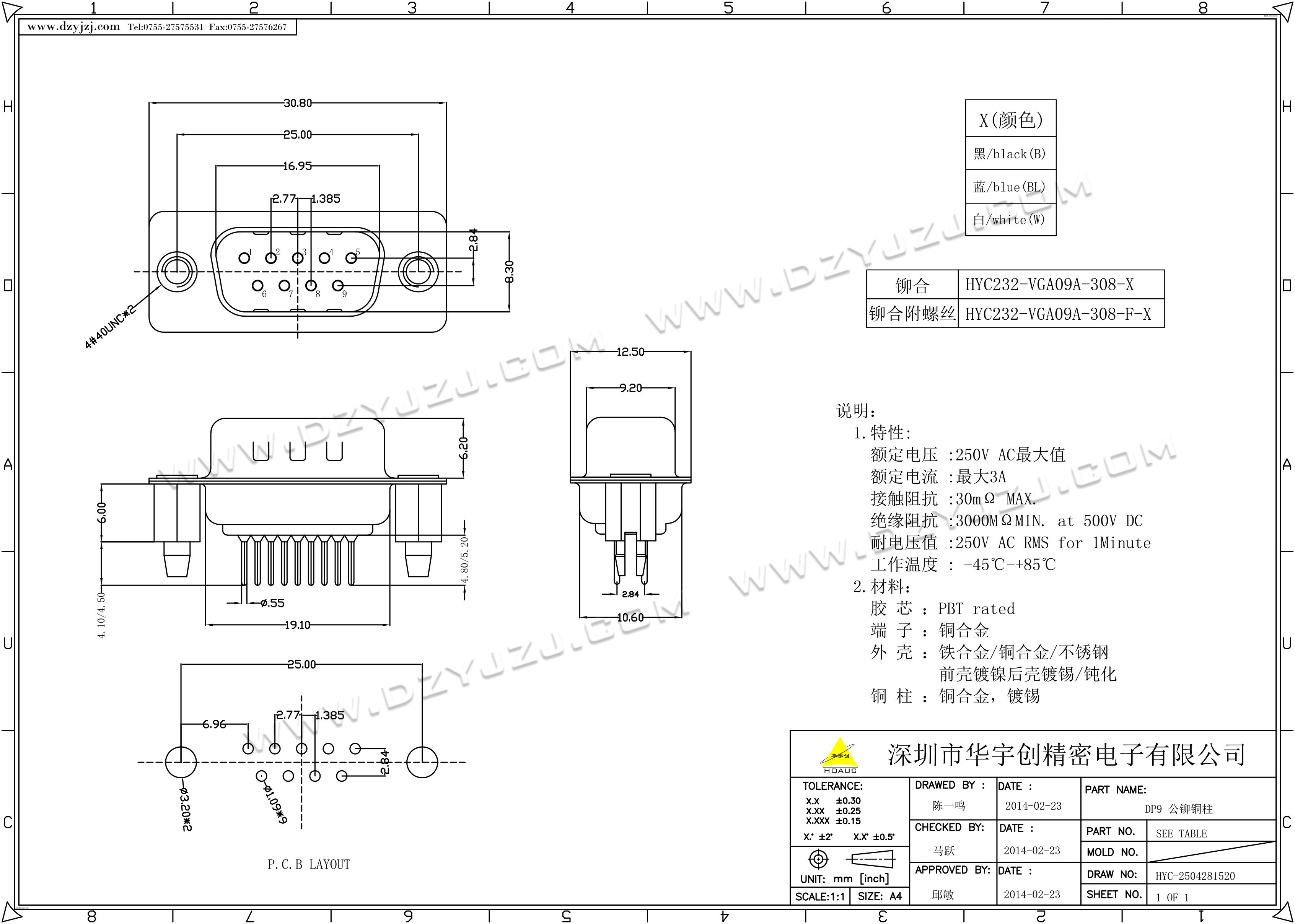 | 商品料号 | HYC232-VGA09A-308-X/HYC232-VGA09A-308-F-X |