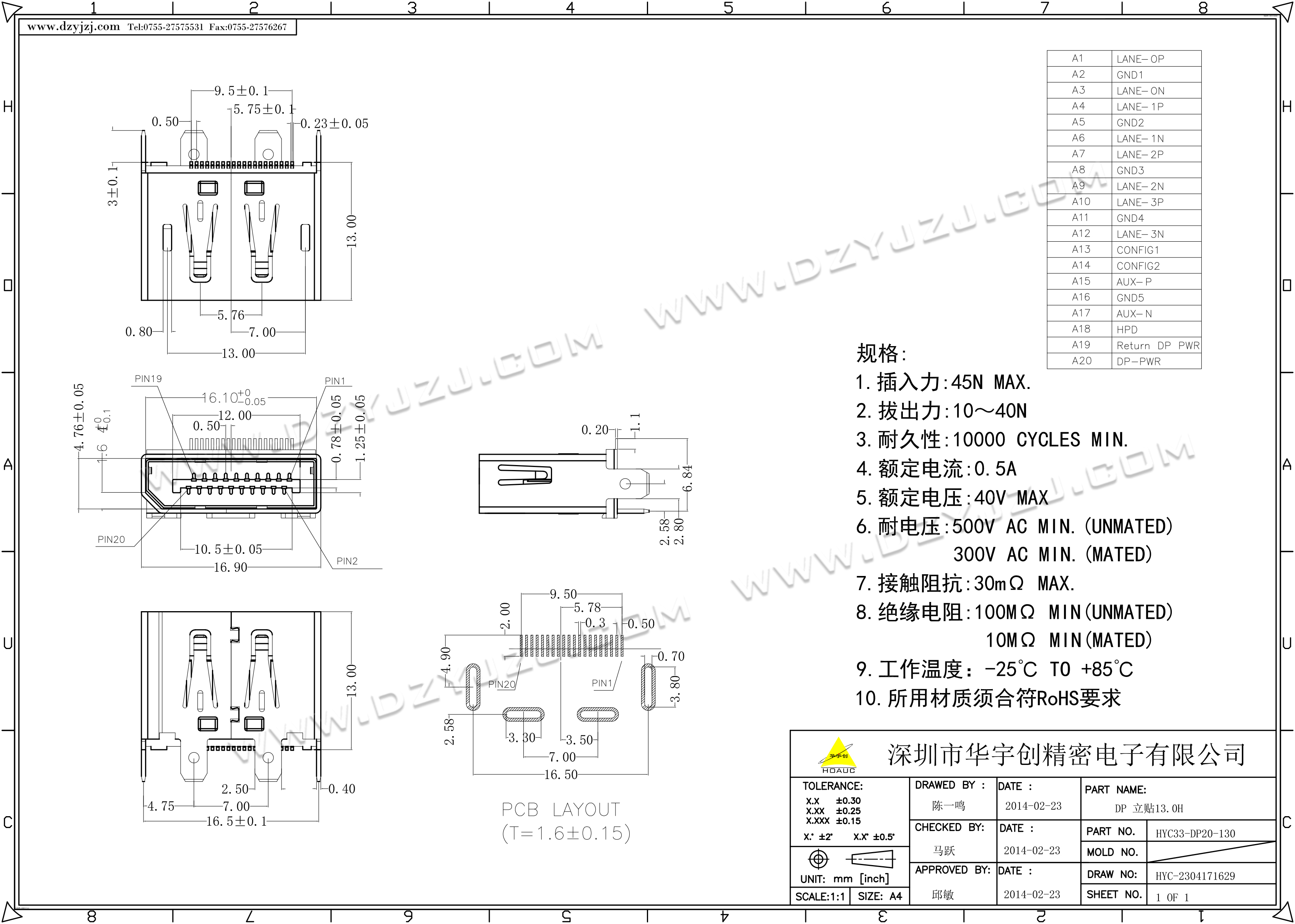 商品料号 HYC33-DP20-130
