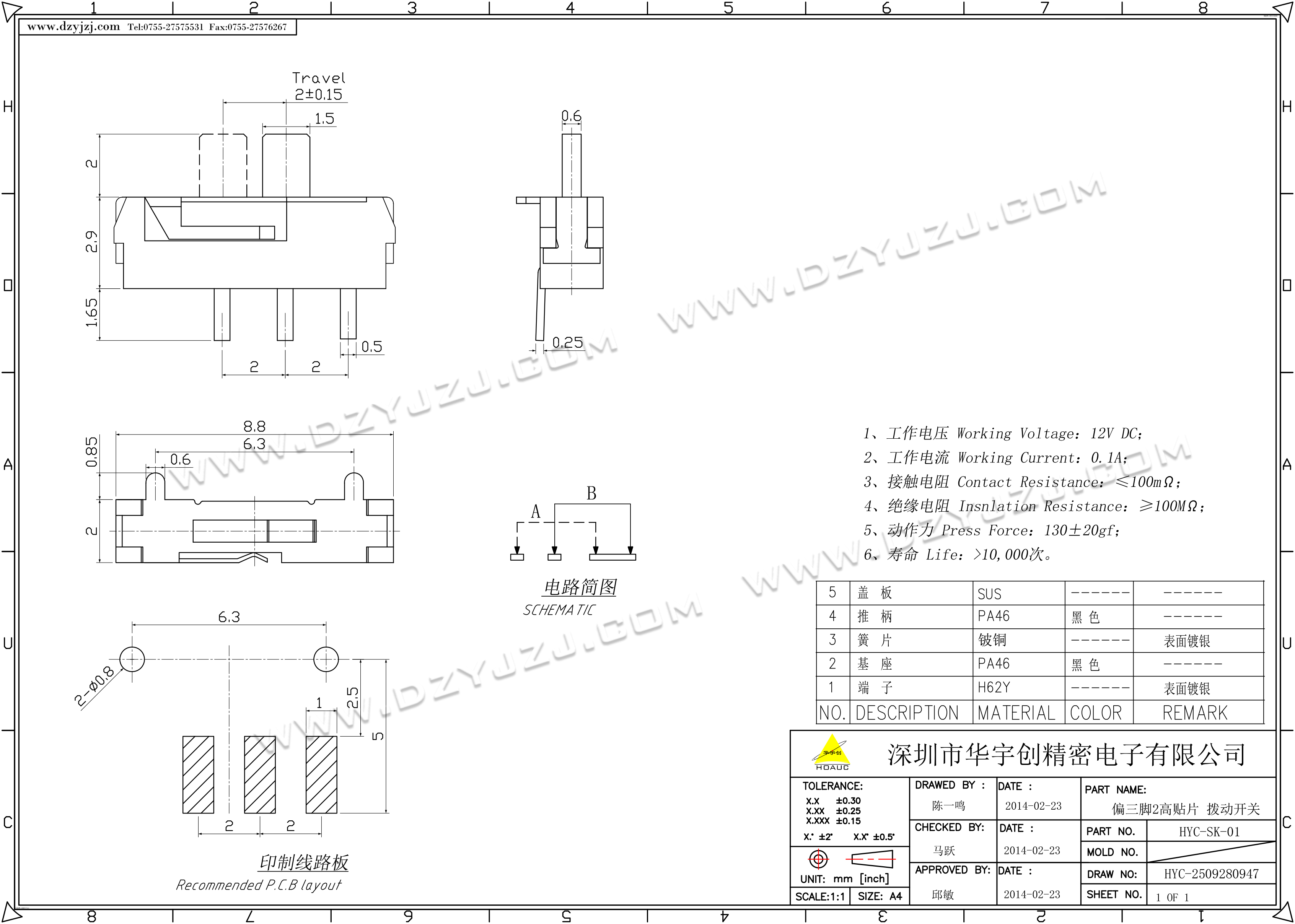 首页 > 分类目录 > 拨动开关 > 偏三脚2高贴片 拨动开关