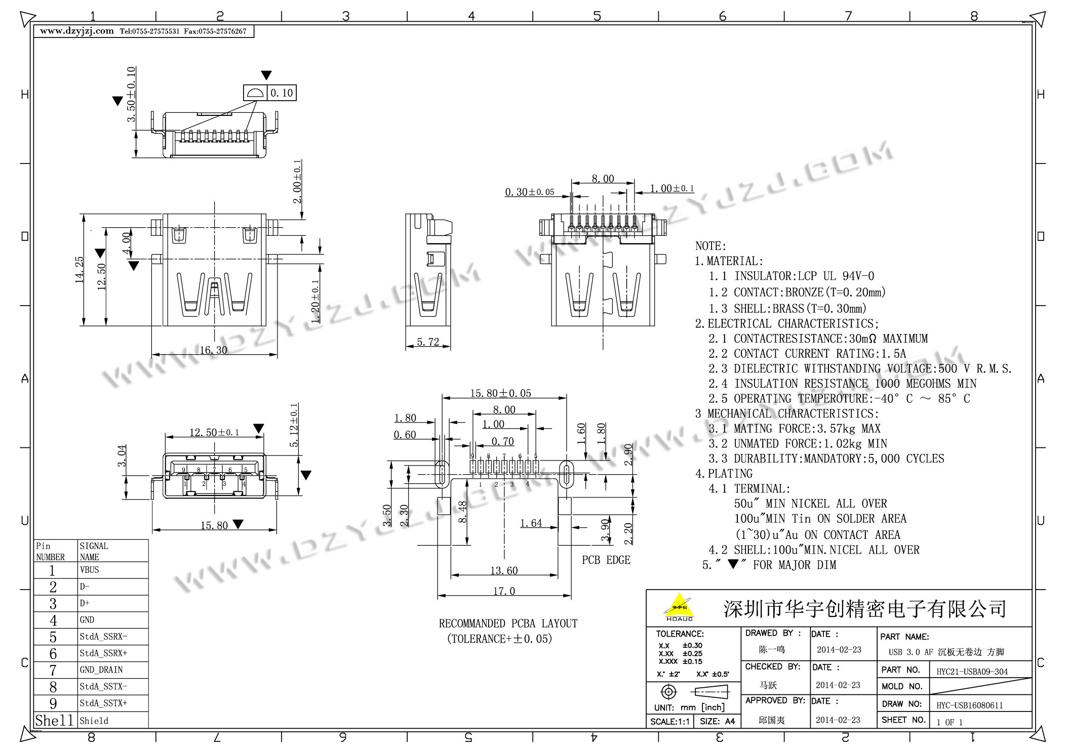 | 商品料号 | HYC21-USBA09-304 |