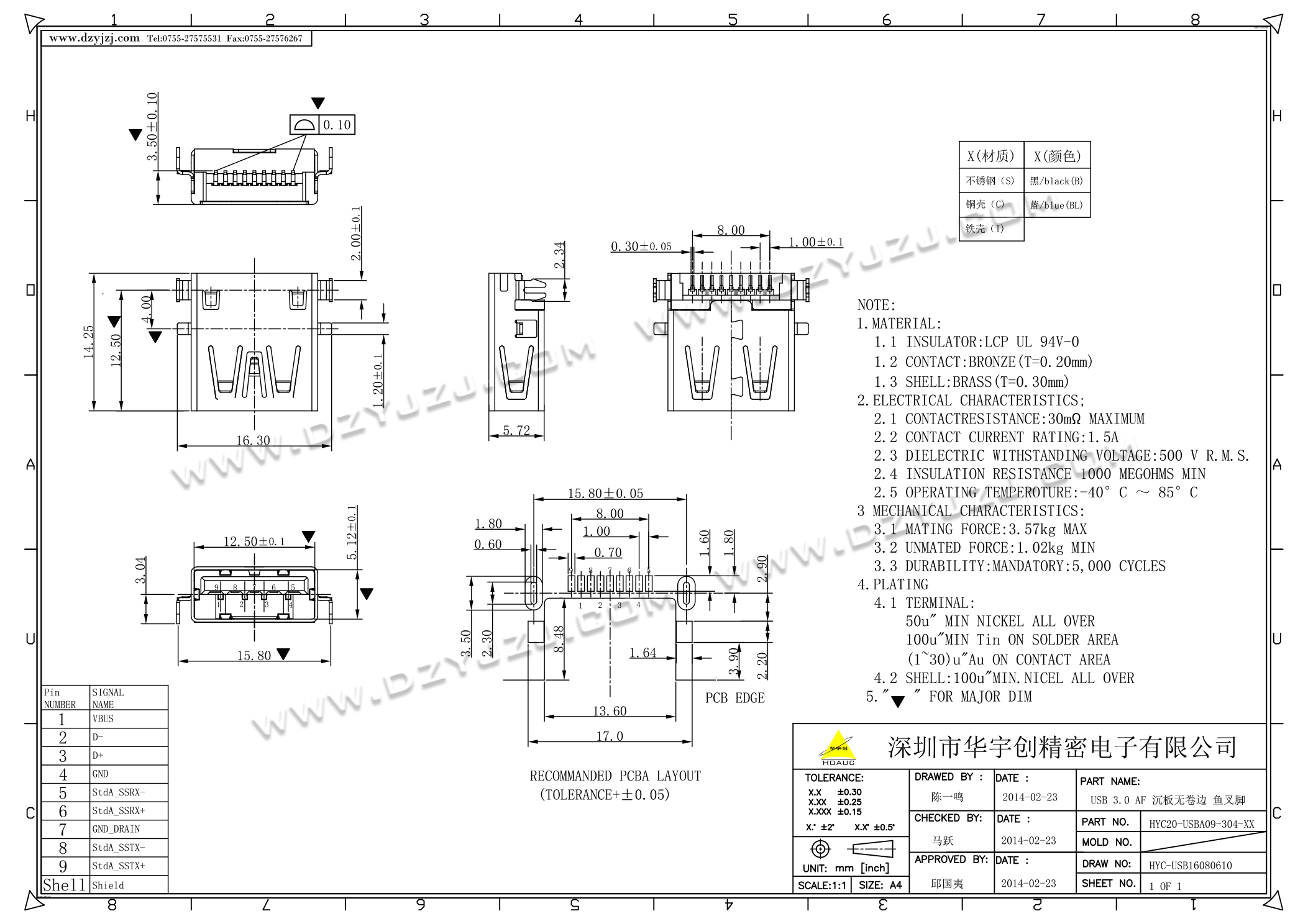 | 商品料号 | HYC20-USBA09-304-XX |
