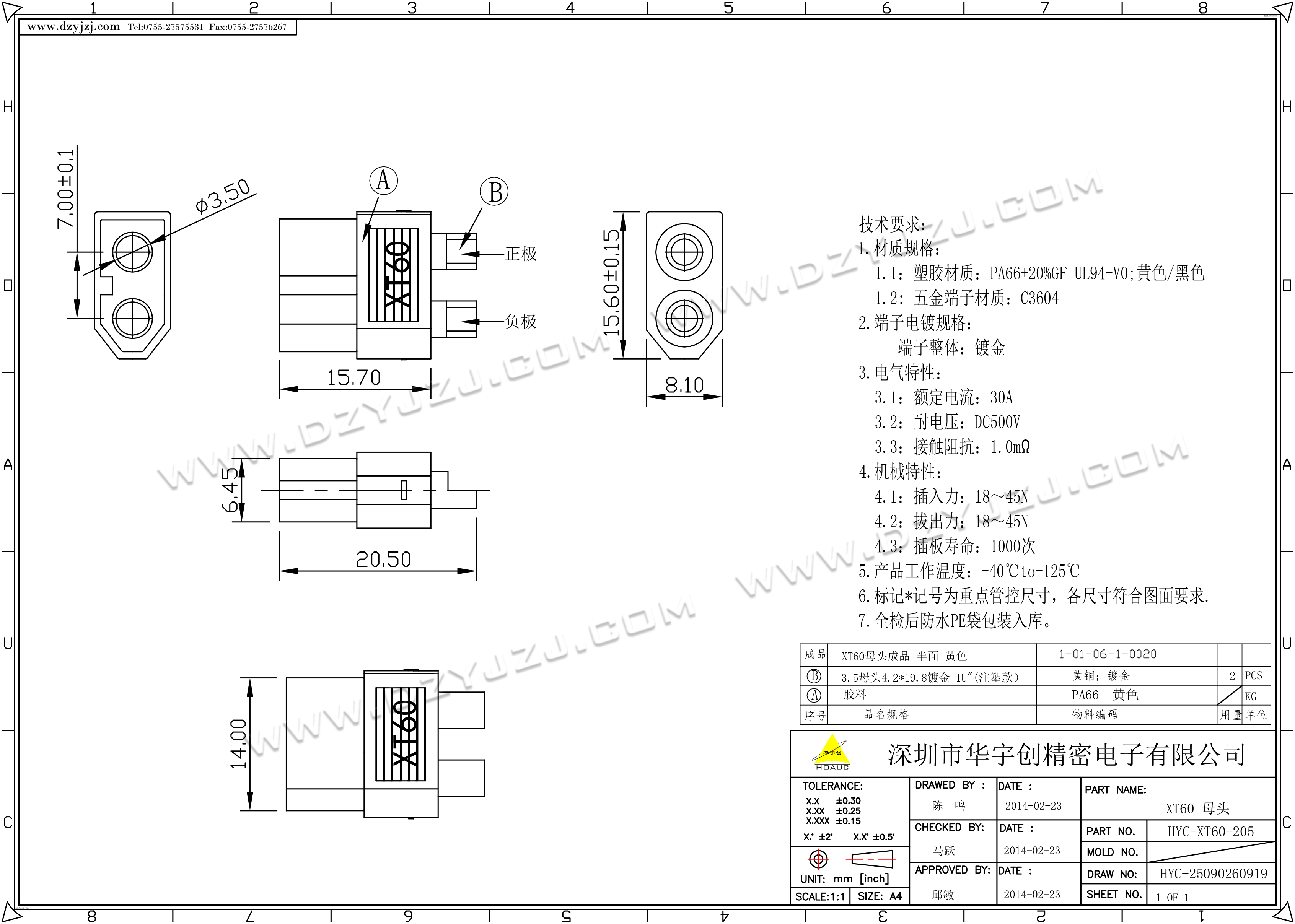 商品料号 HYC-XT60-205