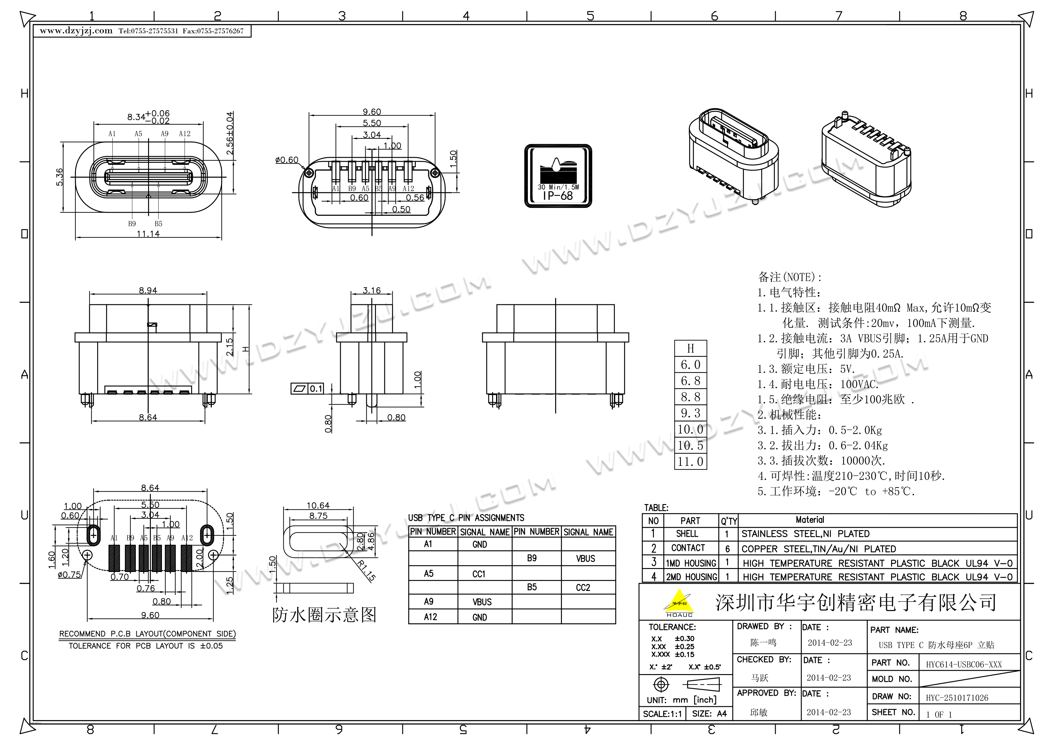 | 商品料号 | HYC614-USBC06-XXX |