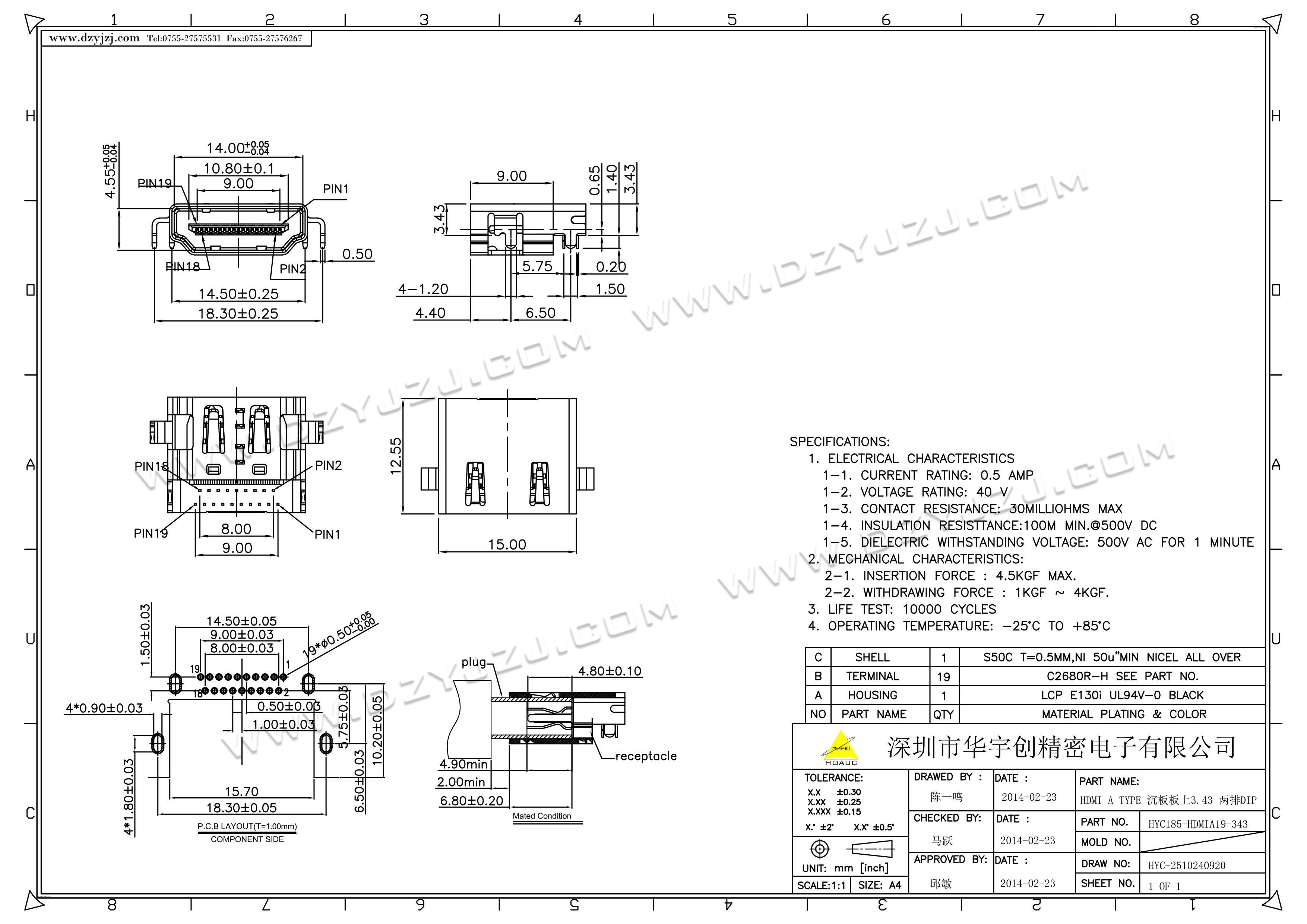 | 商品料号 | HYC185-HDMIA19-343 |