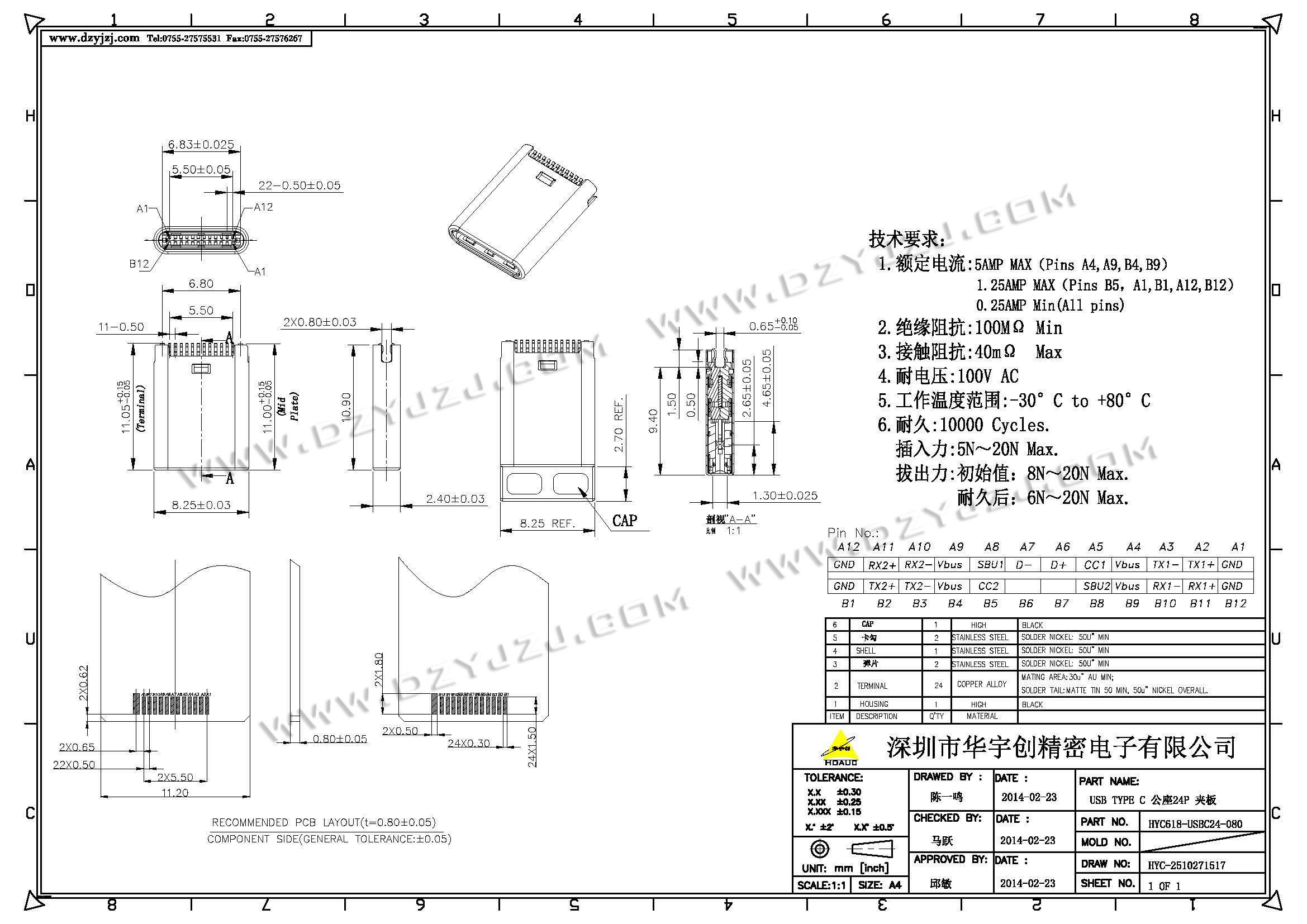 | 商品料号 | HYC618-USBC24-080 |