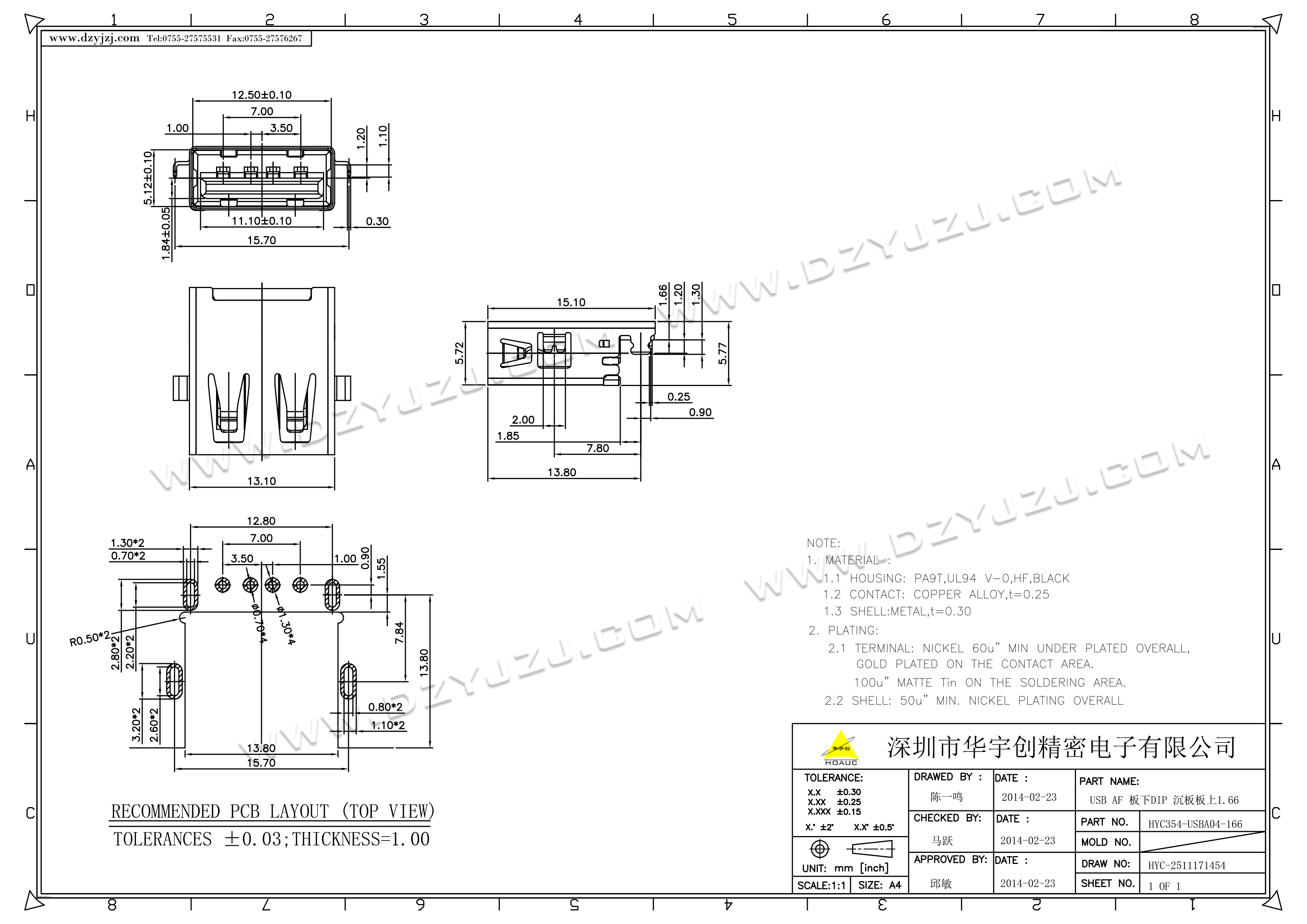 | 商品料号 | HYC354-USBA04-166 |