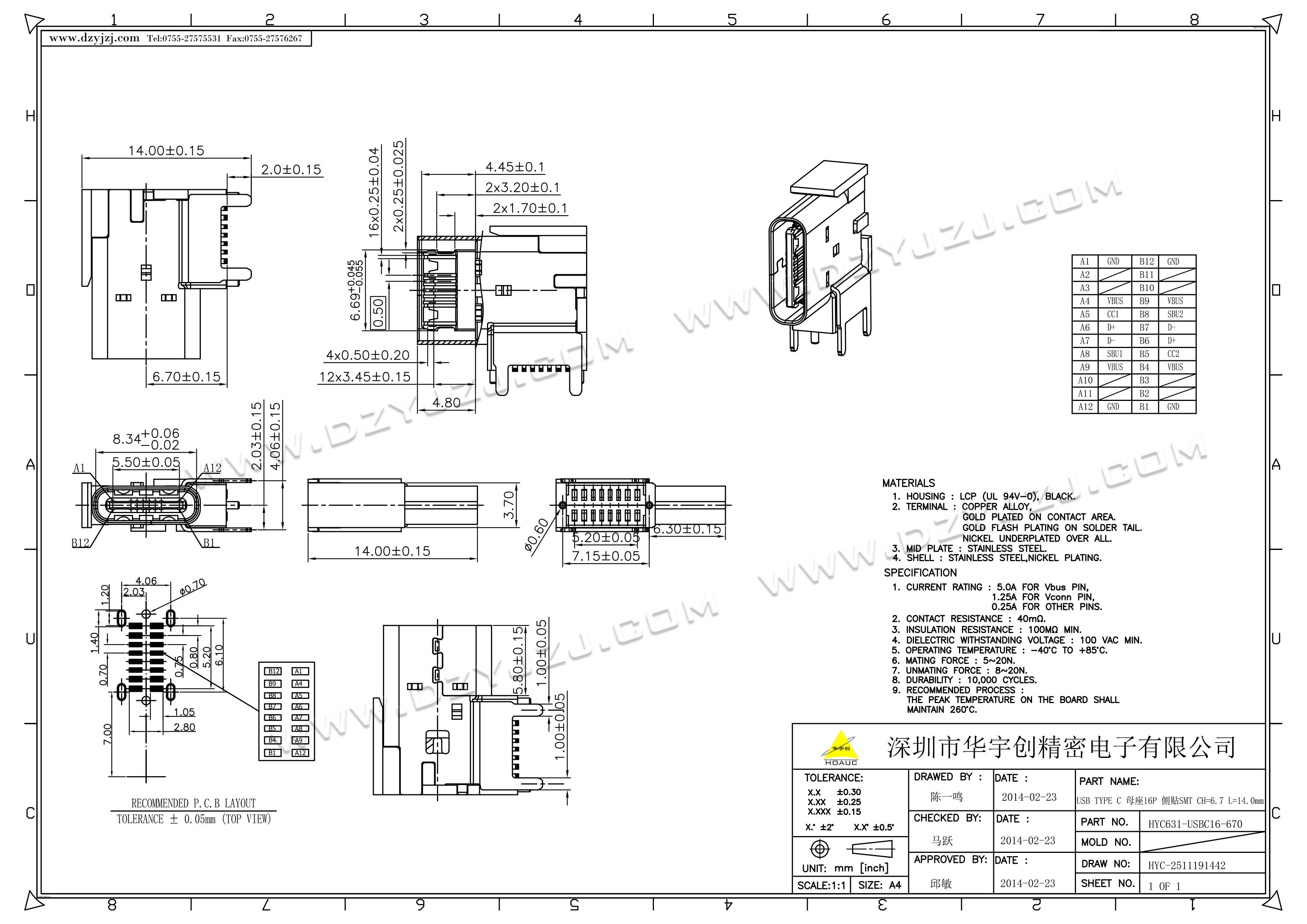 | 商品料号 | HYC631-USBC16-670 |