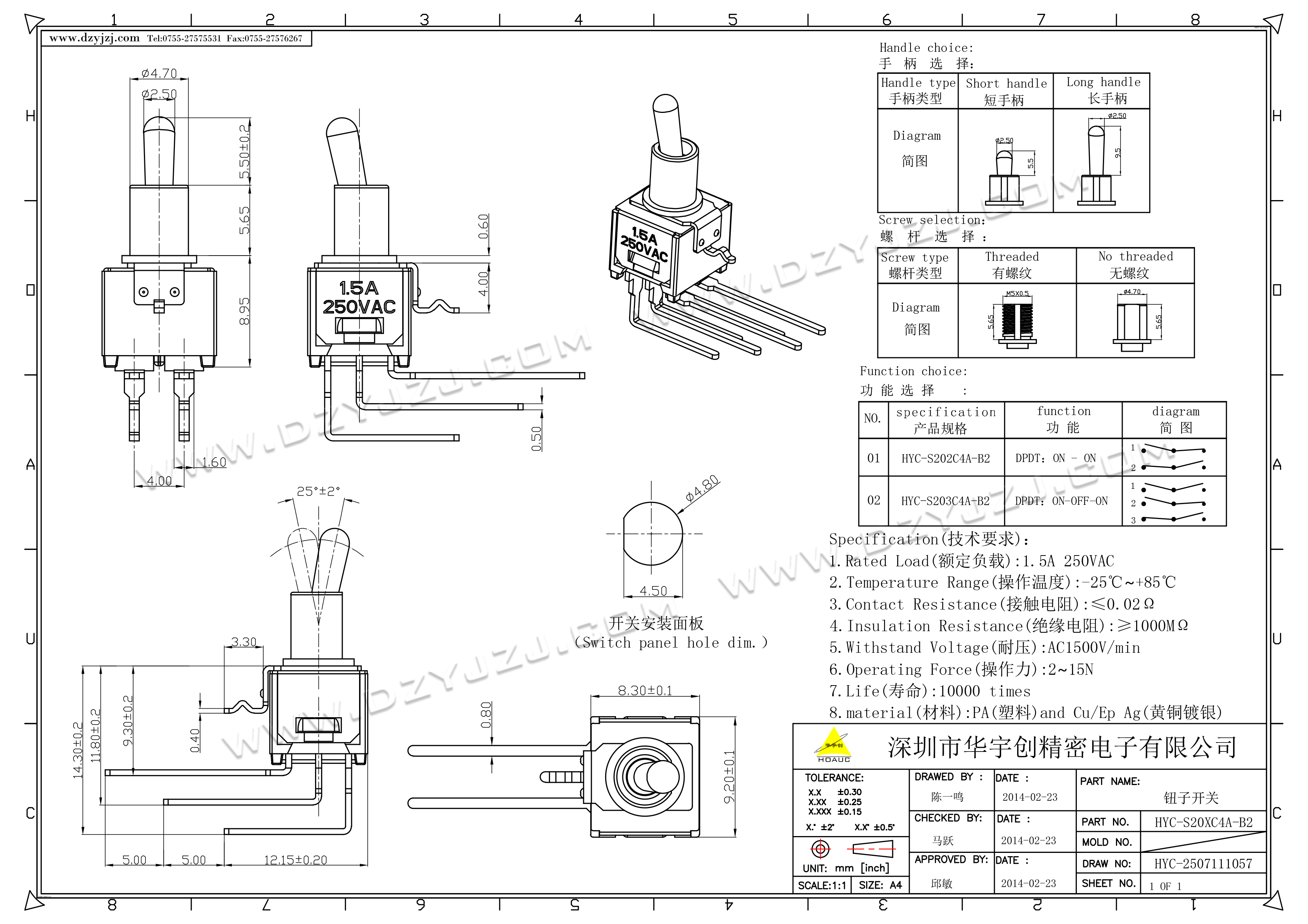 首页 > 分类目录 > 纽子开关 > 纽子开关 柄长5.5