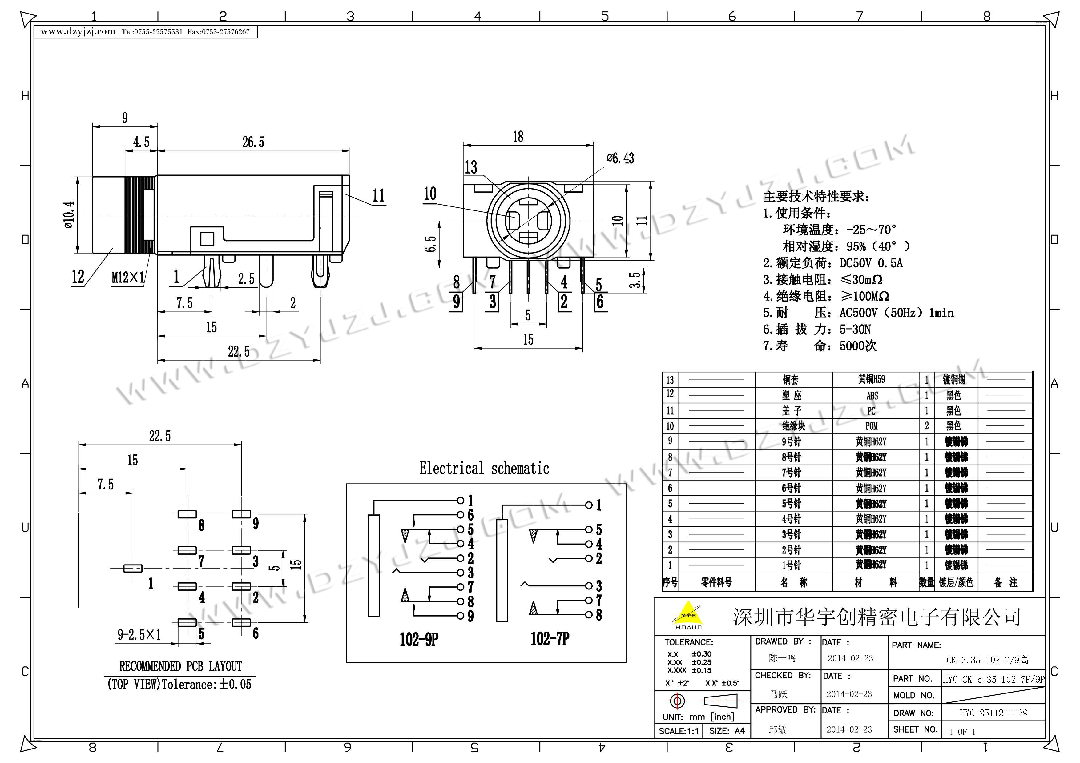 | 商品料号 | HYC-CK-6.35-102-7P |