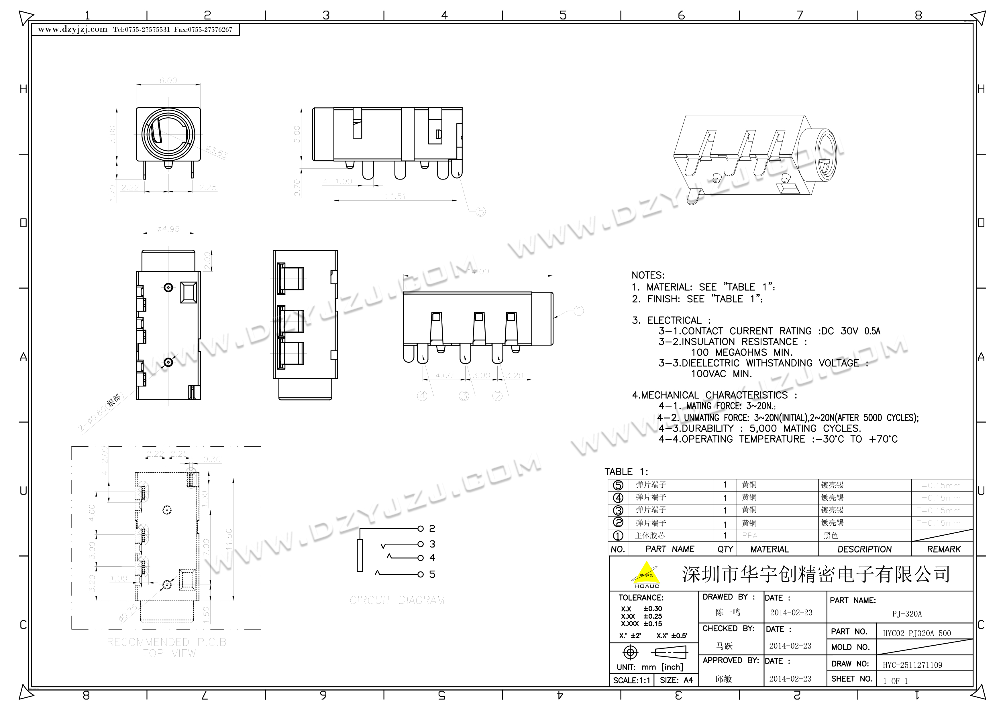 商品料号 HYC-PJ320A-500