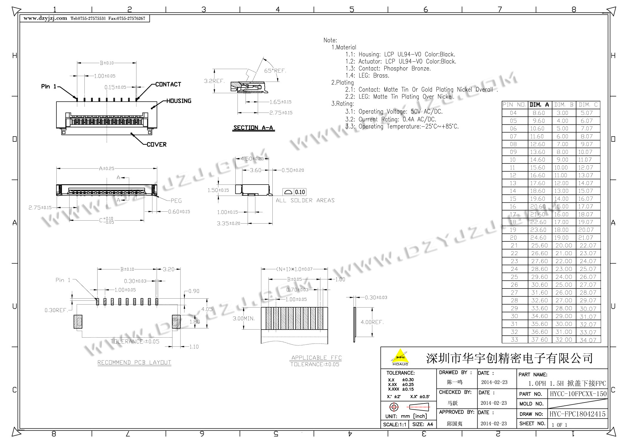 | 商品料号 | HYC1C-10FPCXX-150 |