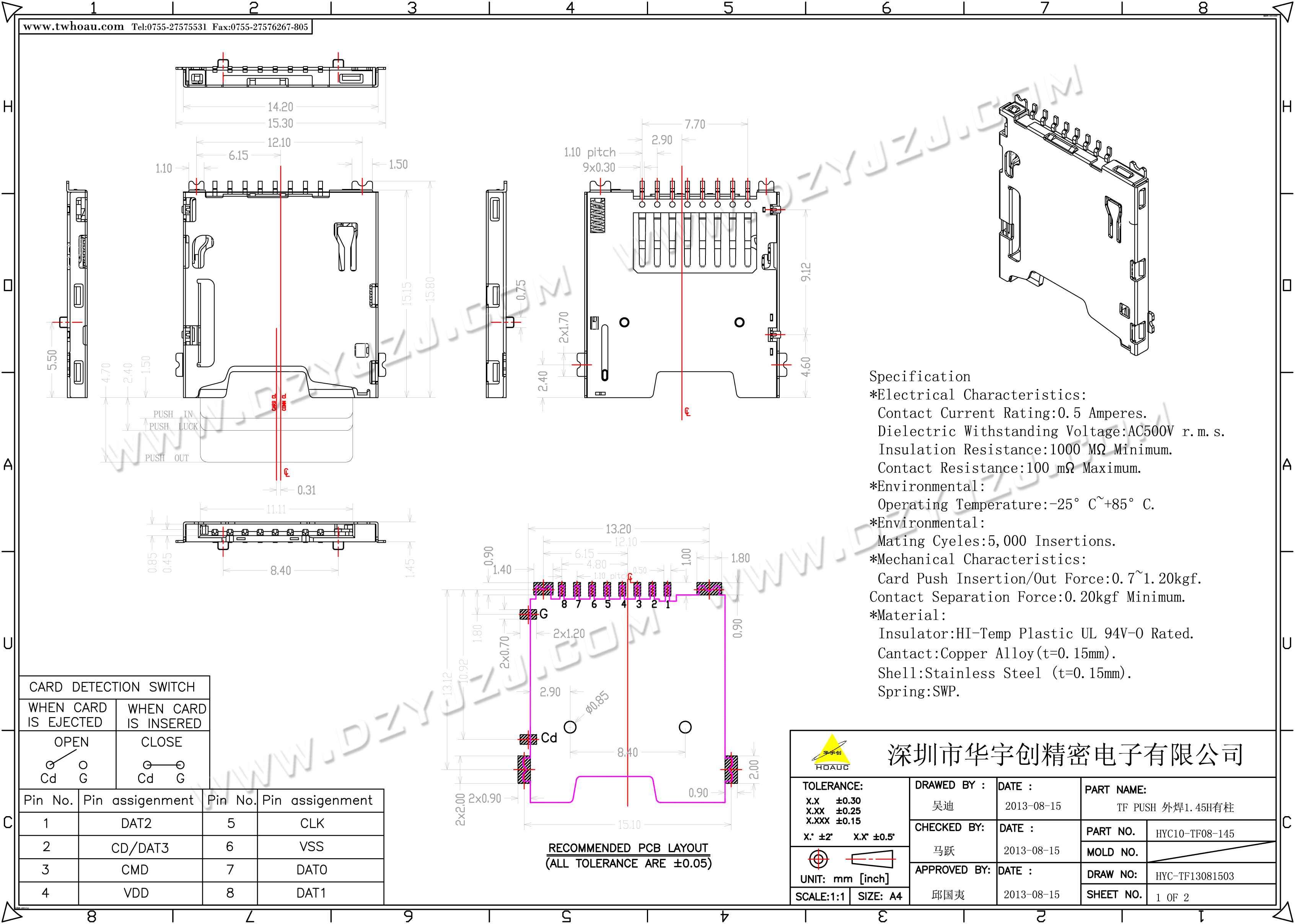 首页 > 分类目录 > TF/MICRO SD卡座 > TF外焊自弹1.45H有柱