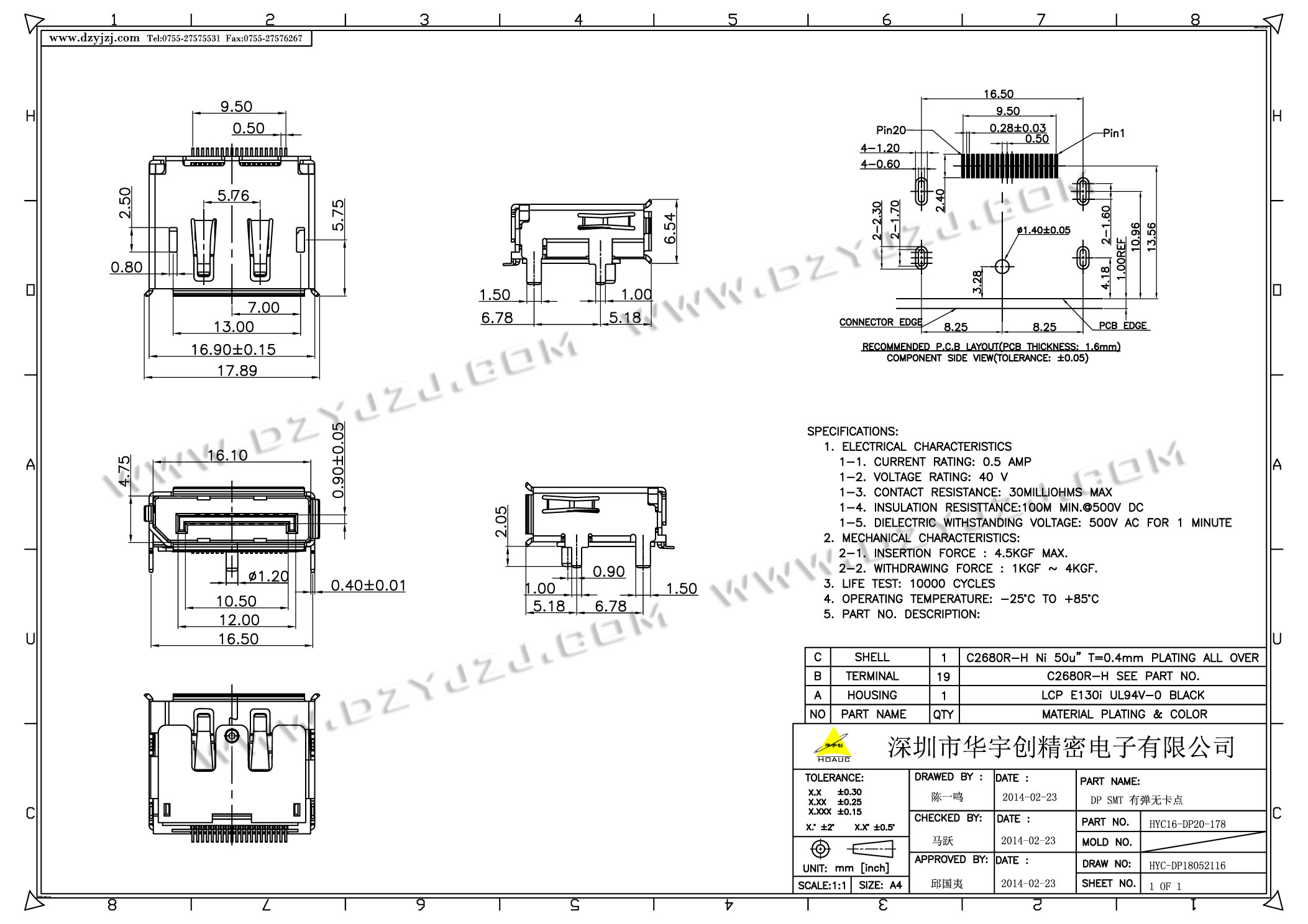 HDMI C TYPE沉板1.51 短体8.6斜口