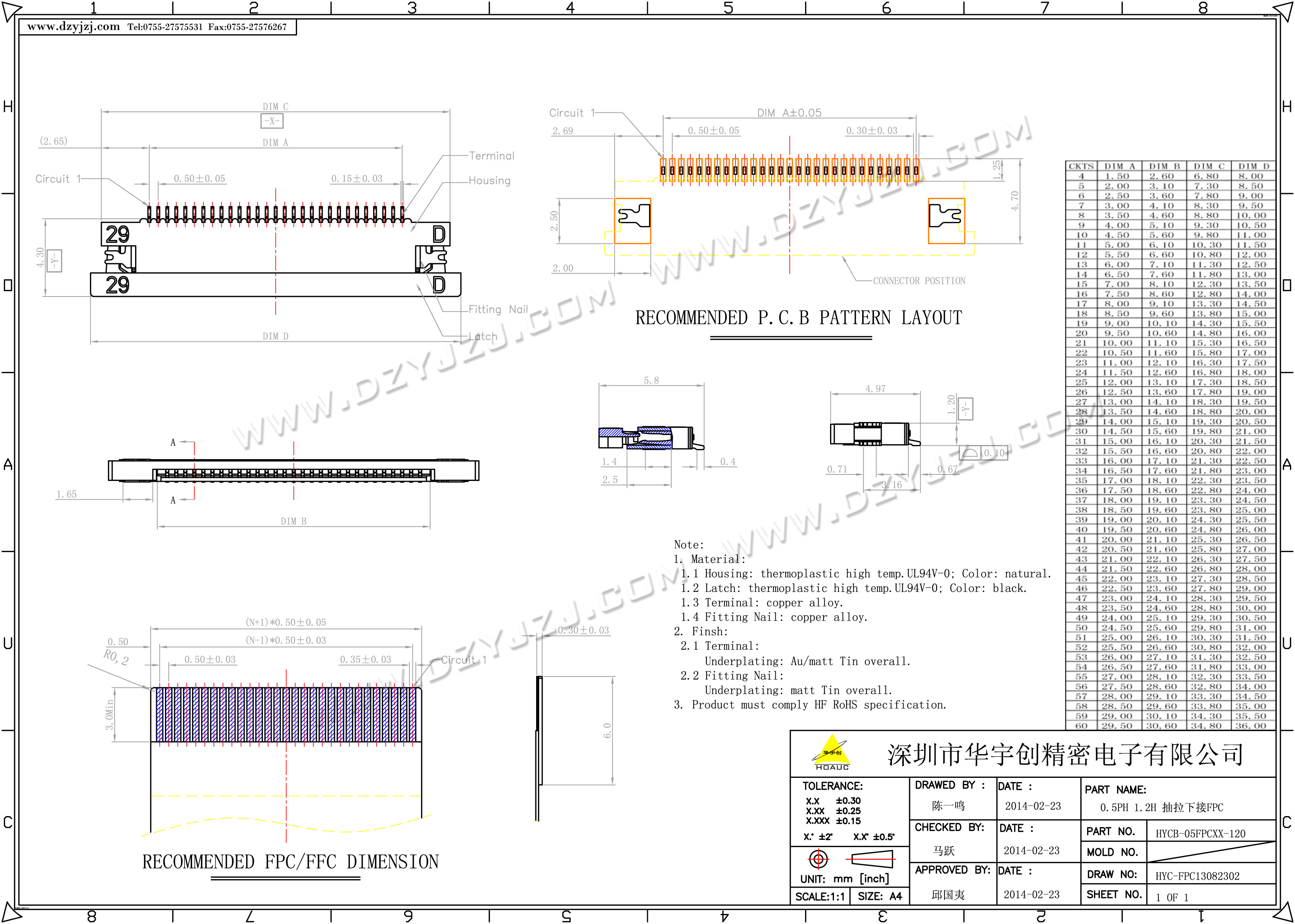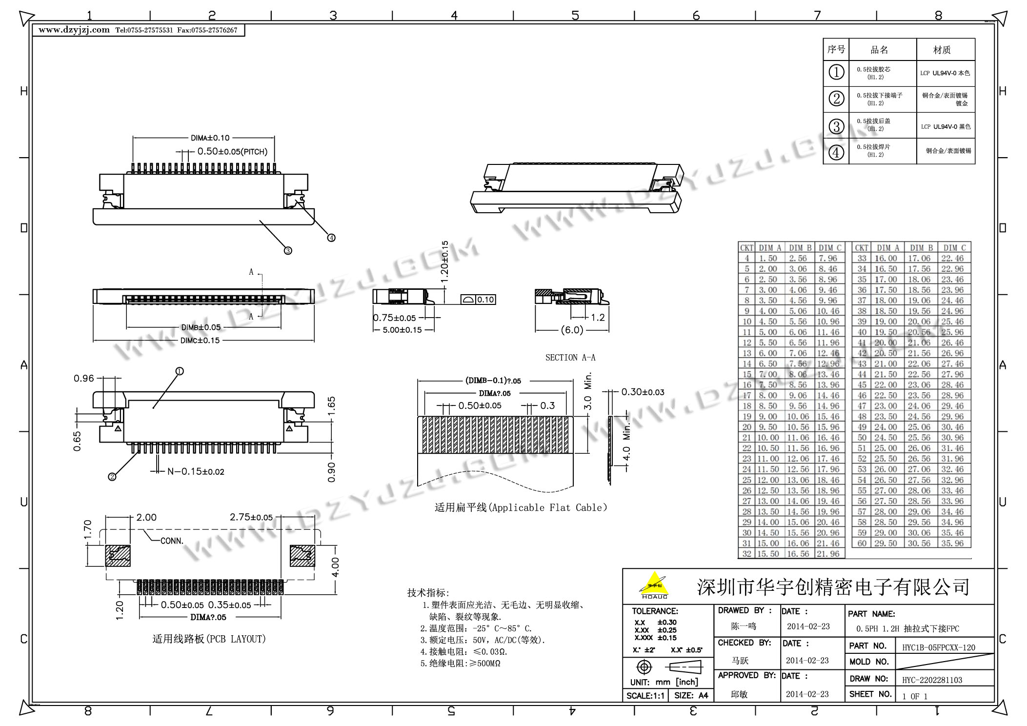 | 商品料号 | HYC1B-05FPCXX-120 |