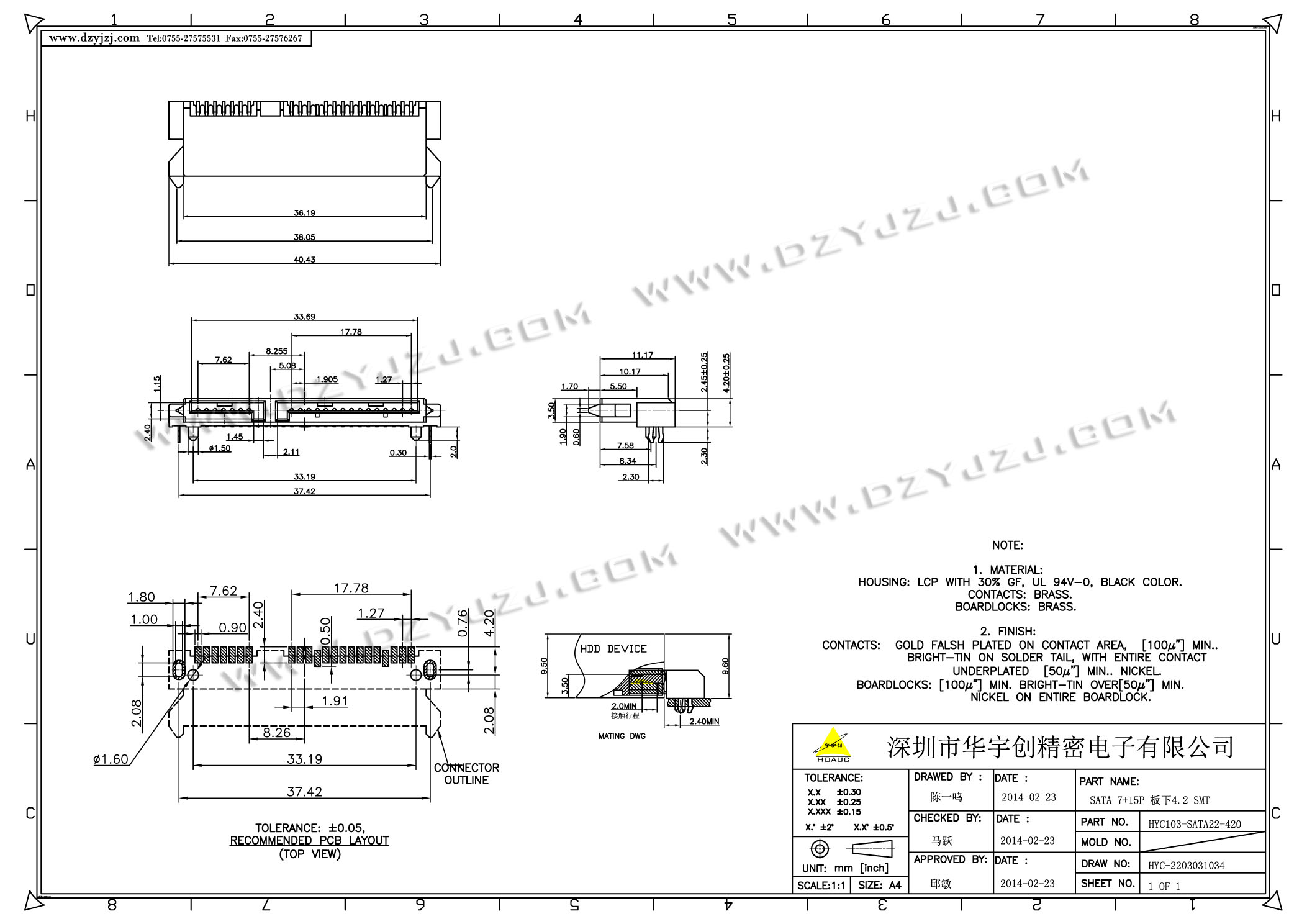 | 商品料号 | HYC103-SATA22-420 |